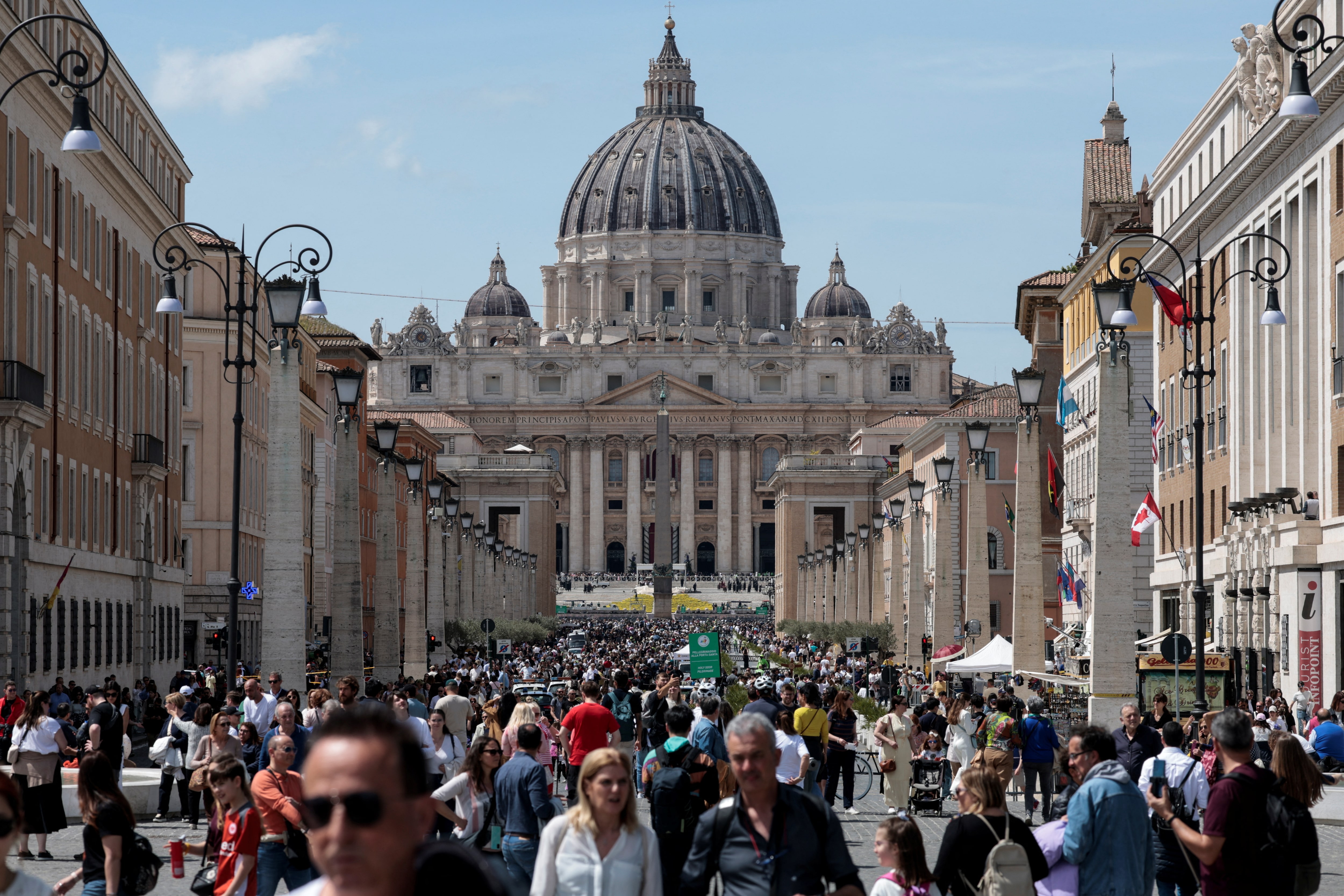 陽光照耀下的聖彼得廣場上,復活節朝聖者們因教皇去世的消息而震驚 | 路透社