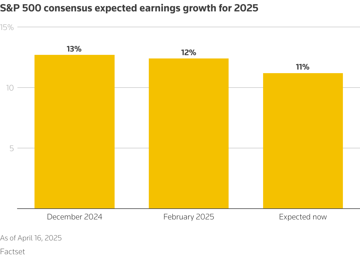 顯示2025年標普500指數預期盈利增長的柱狀圖