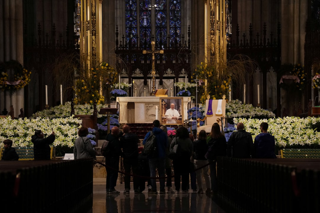 2025年4月21日,美國紐約市曼哈頓聖帕特里克大教堂,梵蒂岡宣佈教皇方濟各去世後,民眾瞻仰展示的教皇方濟各照片。路透社/亞當·格雷路透紐約4月22日電 - 2015年教皇方濟各訪美時,紐約、華盛頓和費城歡呼的天主教徒與非教徒曾讓外界以為美國教會即將迎來充滿活力的新時代。