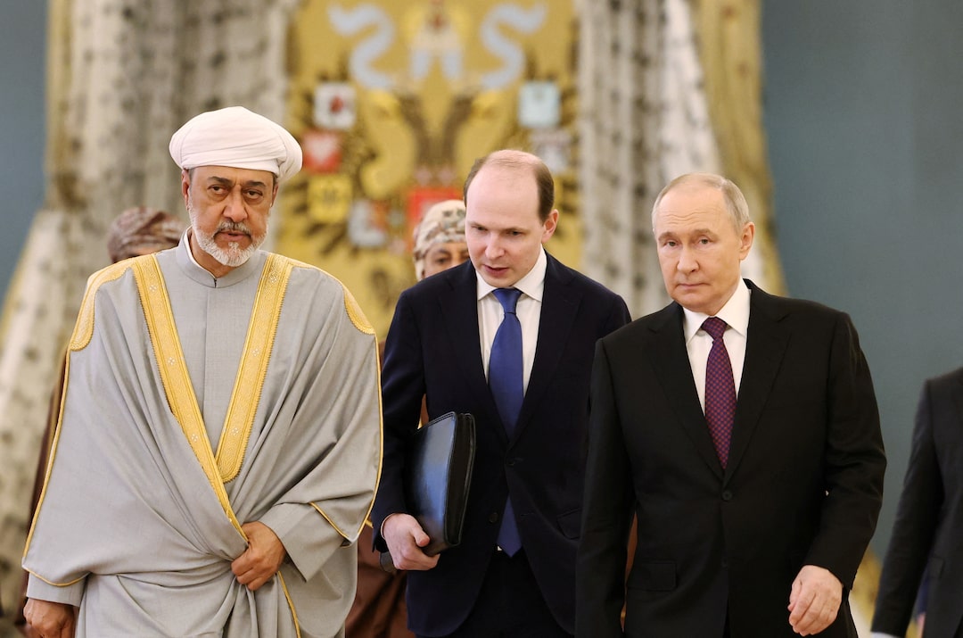 圖1/4:2025年4月22日,俄羅斯總統弗拉基米爾·普京與阿曼蘇丹海賽姆·本·塔裏克·賽義德在莫斯科克裏姆林宮舉行會晤。斯普特尼克通訊社/Kristina Kormilitsyna/路透社聯合發佈