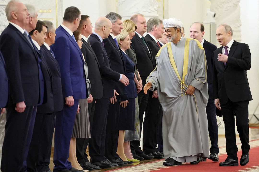 圖1/4:2025年4月22日,俄羅斯總統弗拉基米爾·普京與阿曼蘇丹海賽姆·本·塔裏克·賽義德在莫斯科克裏姆林宮舉行會晤。斯普特尼克通訊社/Kristina Kormilitsyna/路透社聯合發佈