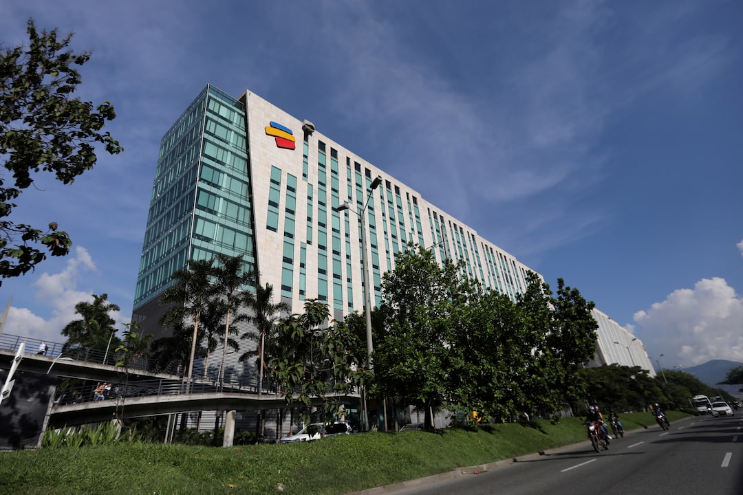圖集第1項,共2項 檔案照片。2019年5月29日,哥倫比亞麥德林市Bancolombia銀行總部大樓全景。路透社/Luisa González