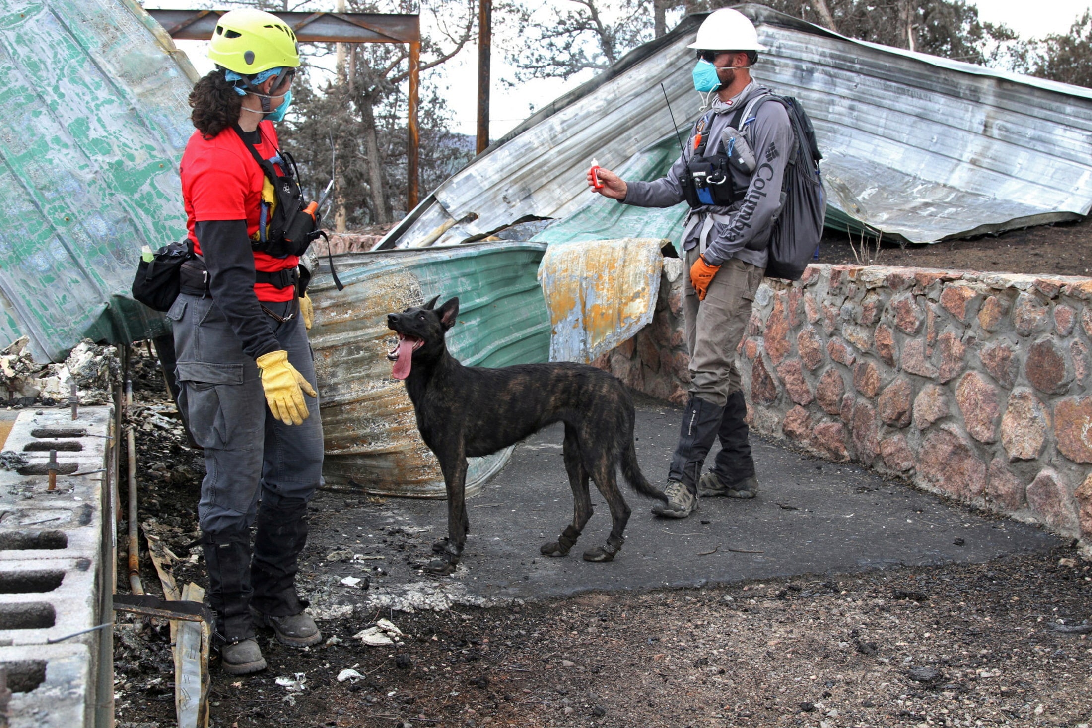 2024年6月25日,美國新墨西哥州魯伊多索地區遭受南福克和鹽野火災後,聯邦緊急事務管理局城市搜救隊的搜救犬與訓導員正在檢查一處被燒燬的房產。西南地區事故管理第五小組/路透社供圖華盛頓,2025年4月24日(路透社)——據路透社看到的一份致機構員工的備忘錄草案顯示,負責災害管理的美國聯邦機構計劃要求幾乎所有員工(包括全職總部和區域工作人員)必須部署到緊急災區。