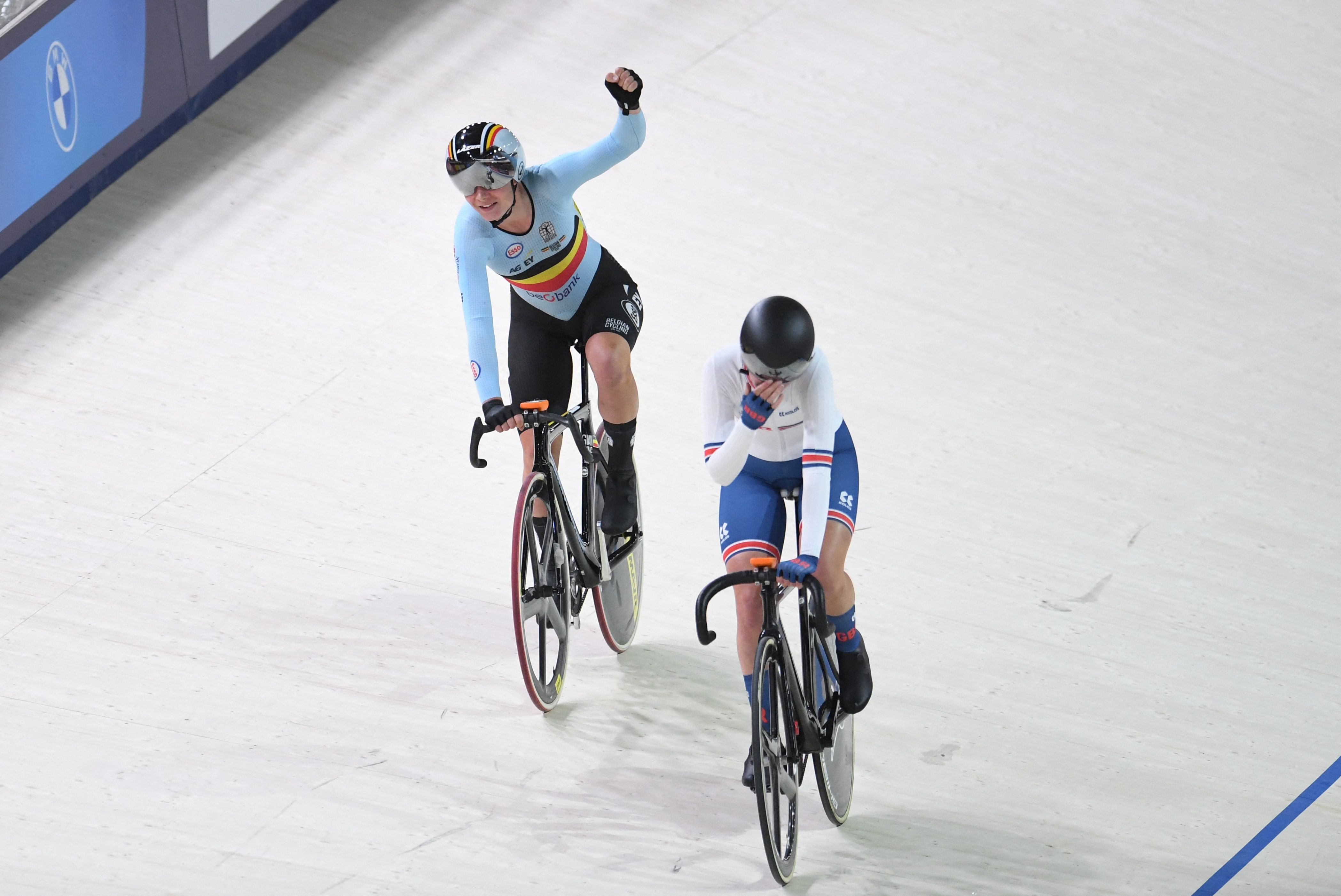 2022年歐洲錦標賽 - 場地自行車賽 - 慕尼黑會展中心,德國慕尼黑 - 2022年8月13日 女子淘汰賽金牌得主比利時的洛特·科佩基與銀牌得主英國的菲佛·喬治共同慶祝 路透社/安德烈亞斯·格伯特/資料圖片倫敦,4月24日(路透社)——隨着創紀錄的18支車隊準備參加今年6月舉行的英國女子自行車巡迴賽,世界冠軍與本土英雄將展開榮耀之爭,這標誌着該賽事歷史上規模最大的參賽陣容。