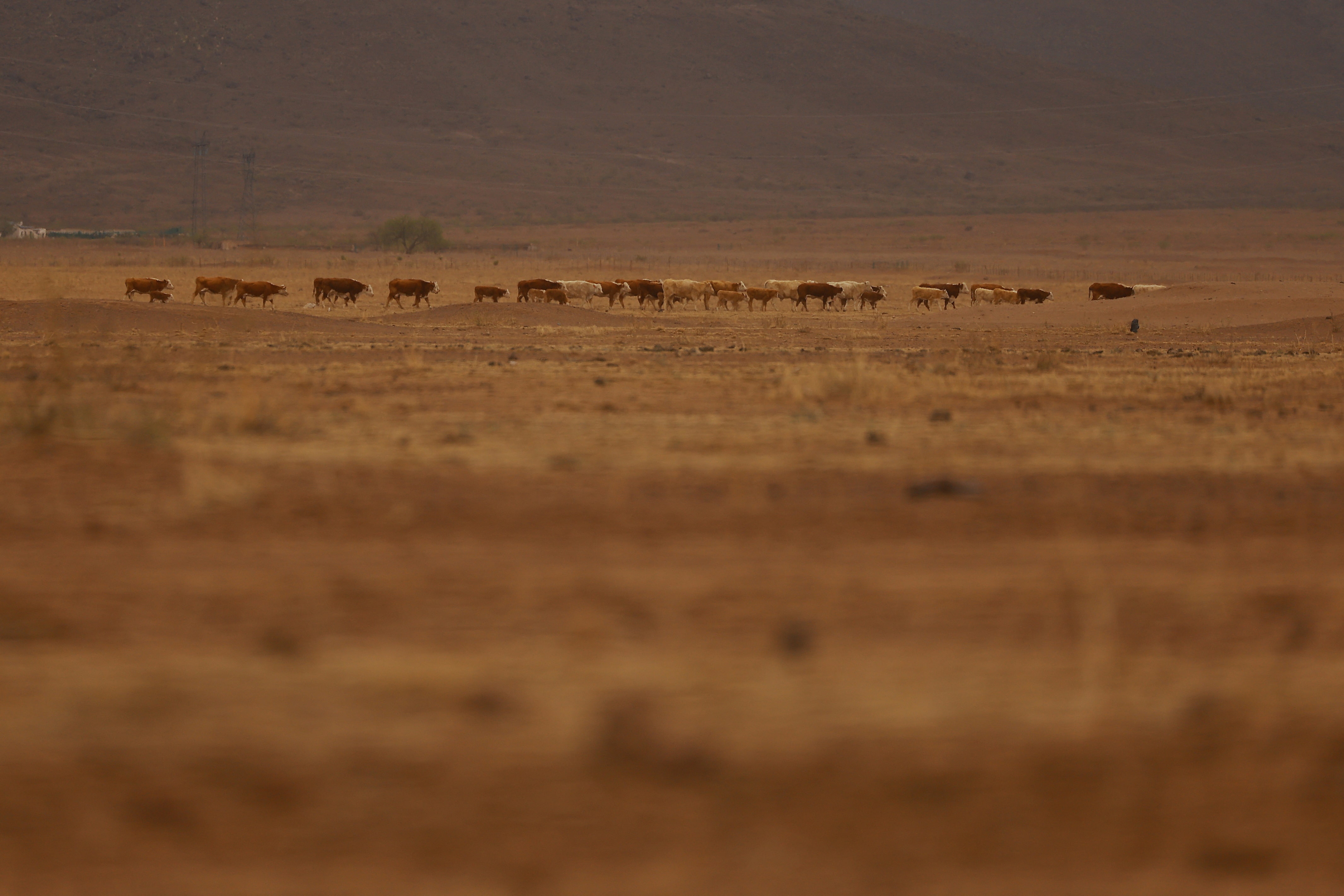 2025年4月4日,墨西哥奇瓦瓦市附近,牛羣在乾涸的牧場上覓食。墨西哥正面臨氣候變化引發的歷史性乾旱,導致其難以履行1944年條約中對美國的水資源承諾。路透社/何塞·路易斯·岡薩雷斯 路透社墨西哥胡利梅斯4月24日電 - 在這個墨西哥北部牧牛小鎮的平原上,動物屍體四處散落。長期乾旱迫使當地牧民考慮背井離鄉,尋找新的水土資源。