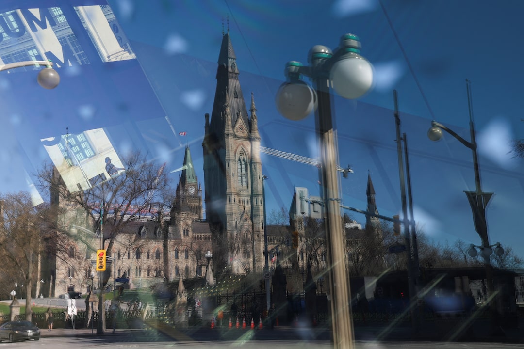 圖1/2 2025年4月27日,加拿大安大略省渥太華,聯邦大選前夕,國會山的倒影映在博物館的窗户上。路透社/安伯·布拉肯