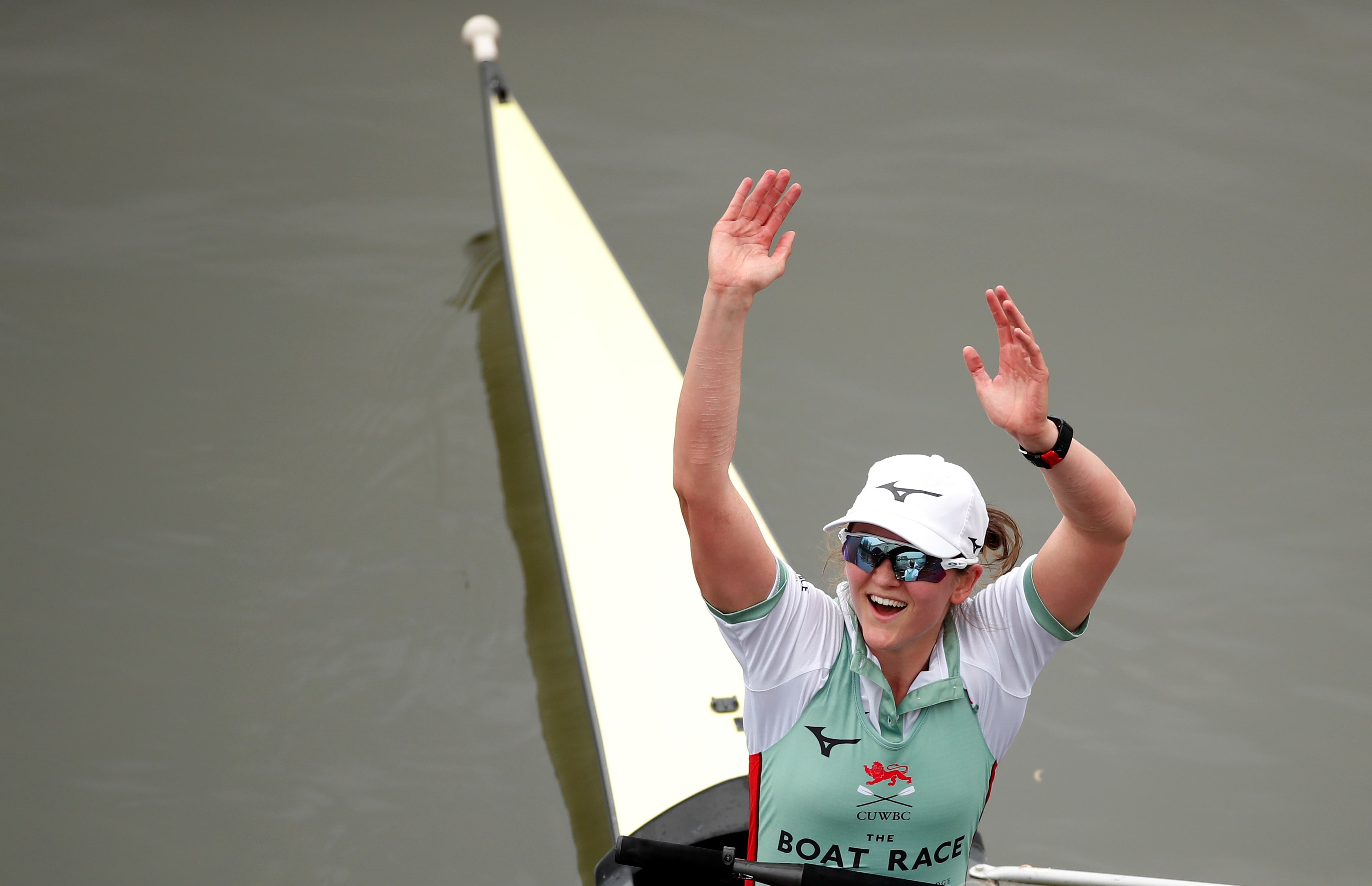 賽艇 - 2019年牛津對劍橋大學划船賽 - 泰晤士河,倫敦,英國 - 2019年4月7日 劍橋隊的特蕾西婭·史密斯慶祝贏得女子賽艇比賽 路透社/安德魯·博耶斯/檔案照片4月28日(路透社) - 加拿大奧委會宣佈,四屆奧運選手特蕾西婭·史密斯已全票連任該組織主席。
