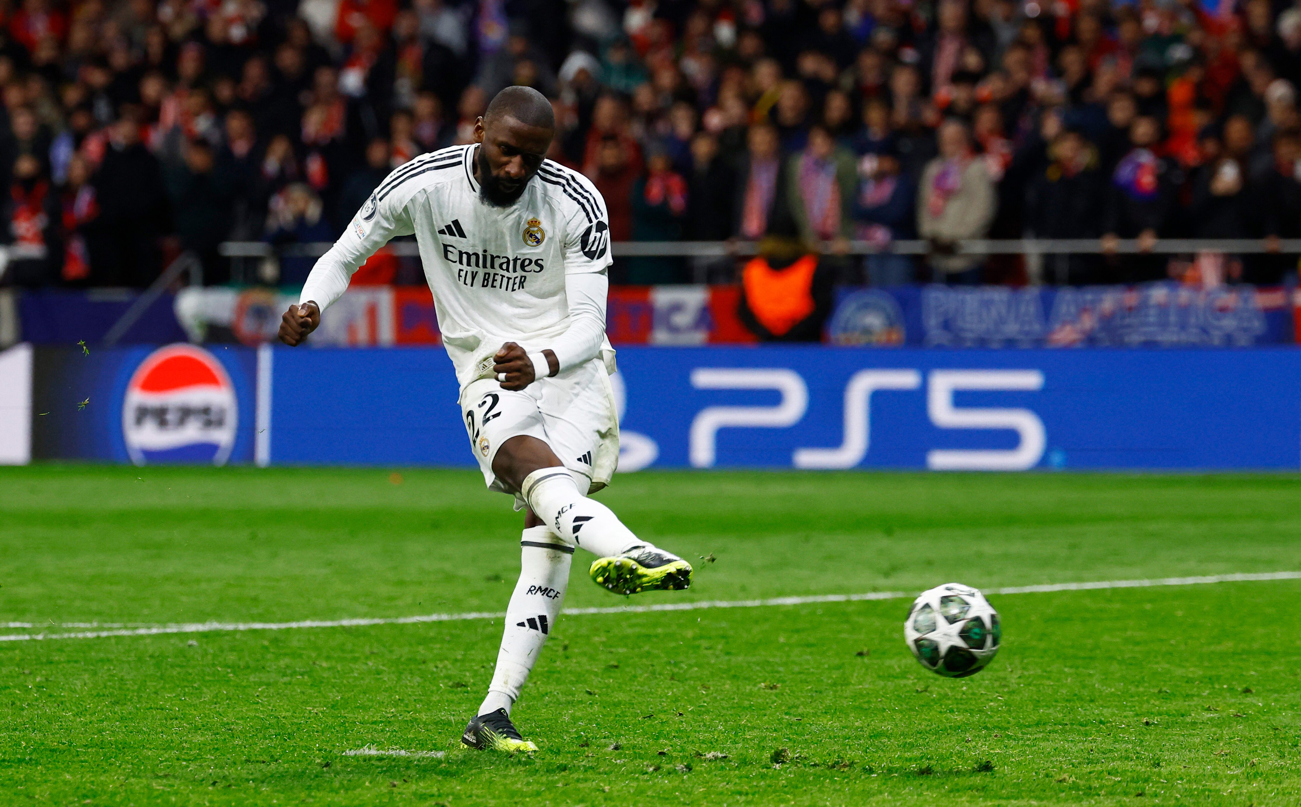 檔案照片:足球 - 英超聯賽 - 八分之一決賽 - 次回合比賽 - 馬德里競技 - 皇家馬德里 - 大都會球場,馬德里,西班牙 - 2025年3月12日 皇家馬德里的安東尼奧·呂迪格在點球大戰中罰進制勝點球 路透社/蘇珊娜·維拉 4月29日(路透社) - 據西甲俱樂部週二宣佈,皇家馬德里後衞安東尼奧·呂迪格已接受膝蓋手術。