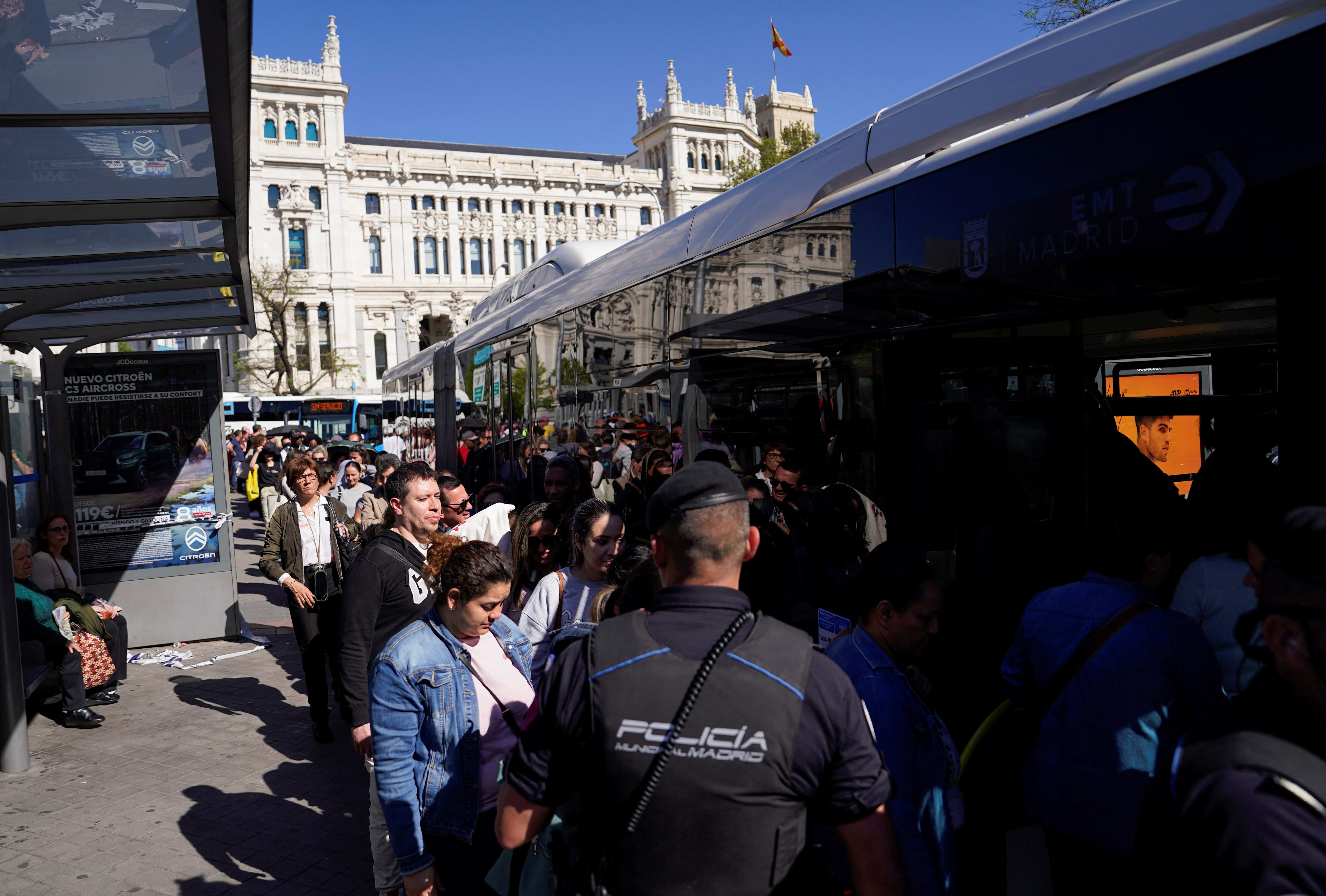 2025年4月28日,西班牙馬德里,地鐵因停電關閉後,人們排隊等候乘坐公交車。路透社/安娜·貝爾特蘭馬德里,4月28日(路透社)- 西班牙和葡萄牙發生大規模停電,導致多人被困電梯、滯留列車,部分民眾在超市搶購必需品,還有人不得不從工作地點徒步長途回家。在馬德里主要火車站阿託查,乘客們站在靜止的列車旁等待。ATM機屏幕一片漆黑,警察正試圖引導人羣前往集中點。