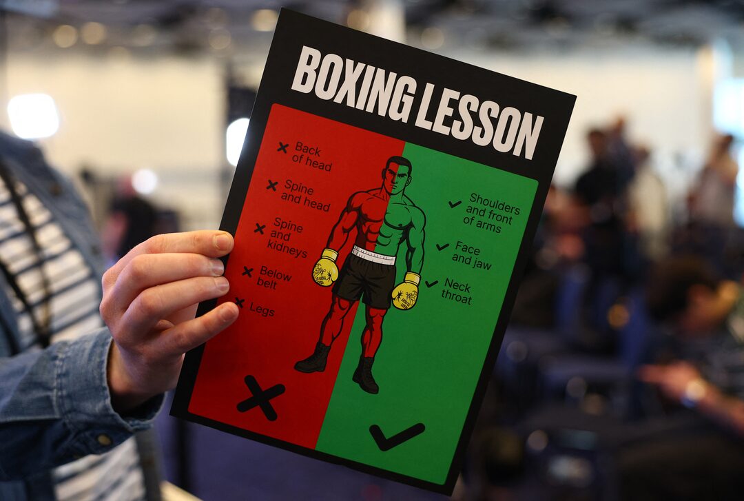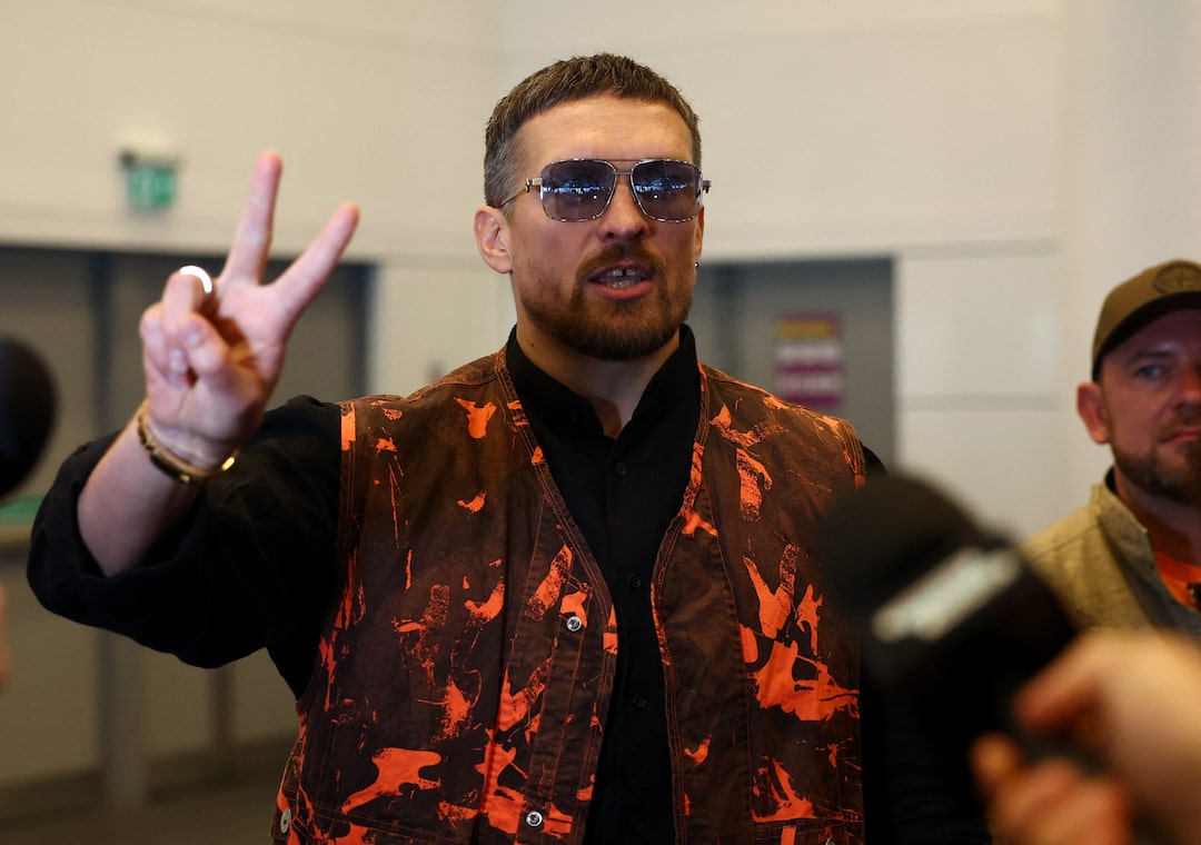 5項中的第1項 拳擊——奧列克桑德爾·烏西克與丹尼爾·杜布瓦新聞發佈會——英國倫敦温布利球場——2025年4月29日 新聞發佈會後的奧列克桑德爾·烏西克 路透社行動圖片/馬修·柴爾茲