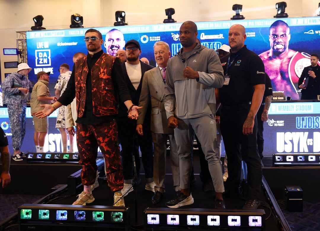 5項中的第1項 拳擊——奧列克桑德爾·烏西克與丹尼爾·杜布瓦新聞發佈會——英國倫敦温布利球場——2025年4月29日 新聞發佈會後的奧列克桑德爾·烏西克 路透社行動圖片/馬修·柴爾茲