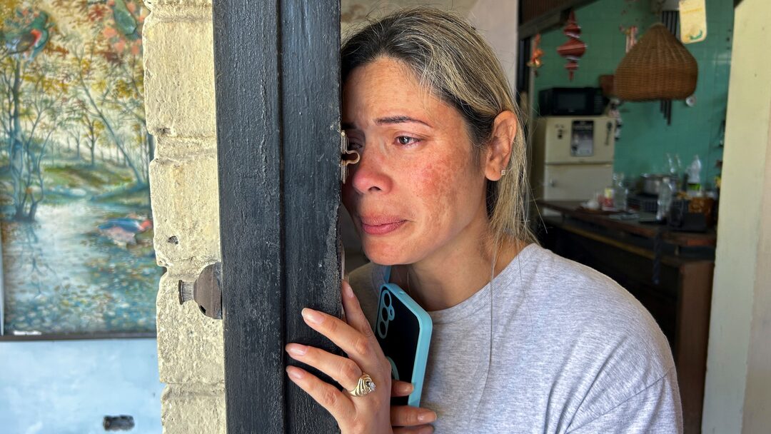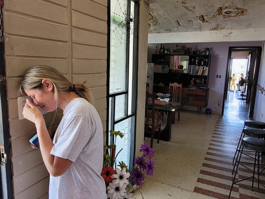 3項中的第1項 44歲的海迪·桑切斯在古巴哈瓦那家中接受路透社採訪時,與身在美國的女兒通話後情緒激動。2025年4月28日。路透社/馬里奧·富恩特斯
