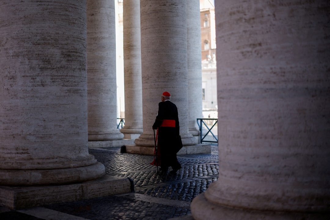 圖1/4 2025年4月29日,梵蒂岡聖彼得廣場上,一位紅衣主教在5月7日即將舉行的秘密會議前行走。路透社/阿曼達·佩羅貝利