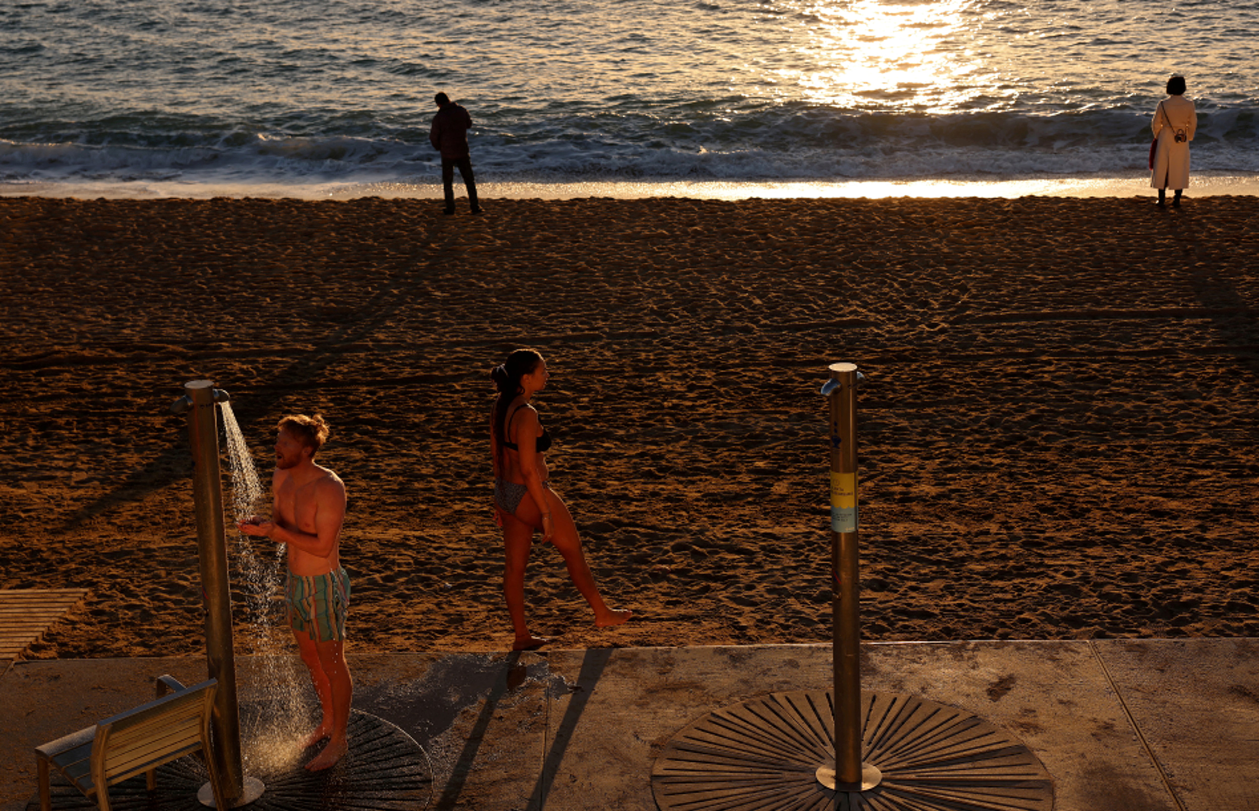 2024年1月18日,西班牙巴塞羅那,一名遊客在地中海游泳後,在巴塞羅內塔海灘的淋浴間沖洗。路透社/Nacho Doce/資料圖片路透社巴塞羅那/馬德里4月30日電——西班牙最受歡迎的旅遊勝地加泰羅尼亞地區推遲了原定於5月起實施的最高15歐元(17美元)每日遊客税計劃,同時尋求遏制過度旅遊的方法。