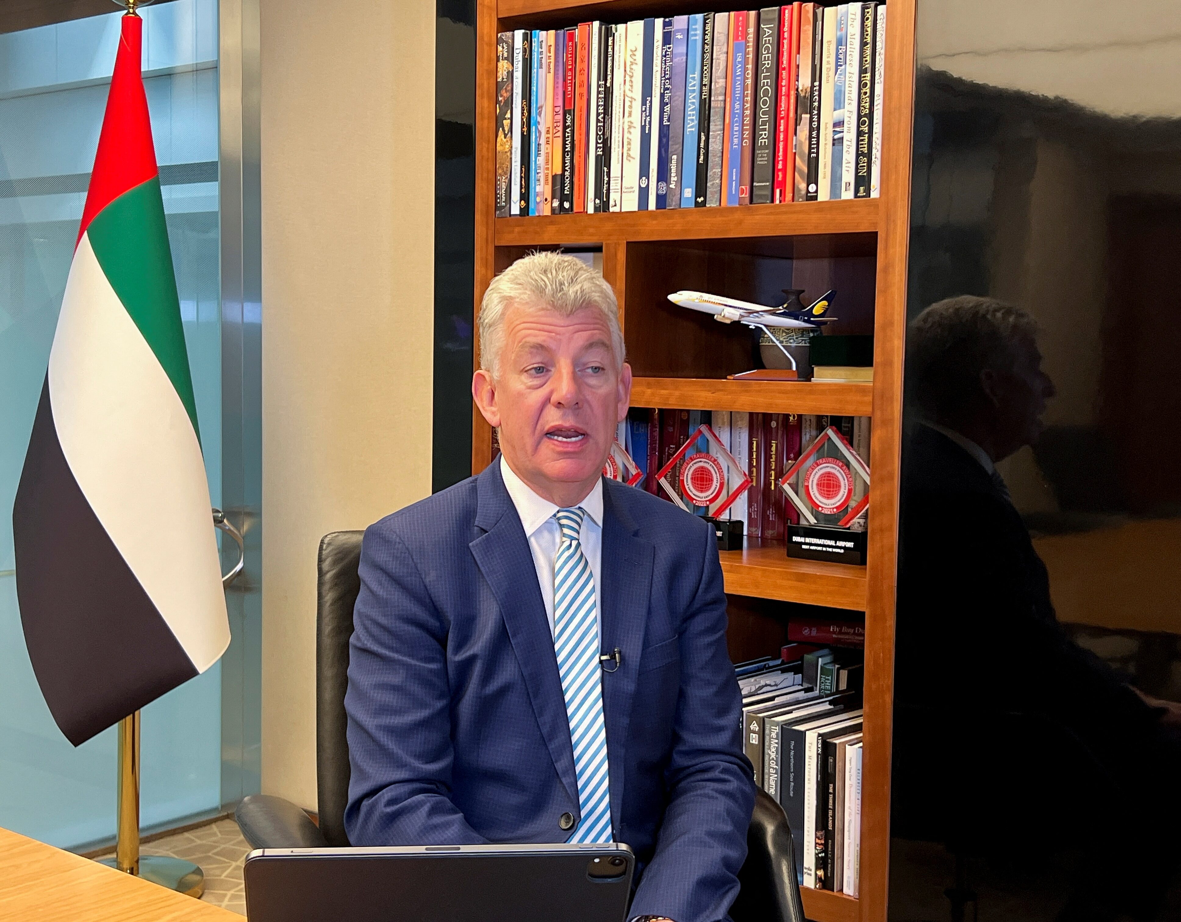 迪拜機場首席執行官保羅·格里菲斯2022年11月22日在阿聯酋迪拜接受路透社採訪。路透社/AbdelHadi Ramahi/資料圖片路透迪拜4月30日電 - 迪拜機場首席執行官週三向路透社表示,美國關税政策加劇了國際旅遊市場的波動,但在疫情後中國遊客逐步迴歸的支撐下,中東地區遊客數量保持穩定。