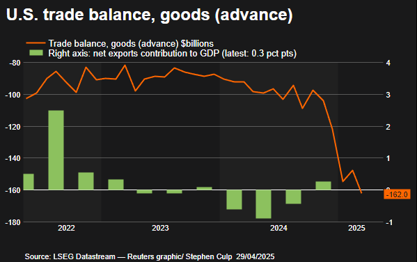 ** 本月陸續發佈的數據顯示經濟前景日益不確定,企業和消費者信心大幅下滑,凸顯出美國關税政策快速轉變帶來的後果。
