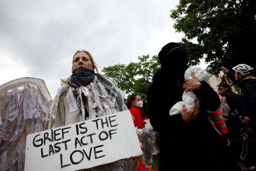 2025年5月15日,德國柏林,親巴勒斯坦示威者抗議以色列,紀念"浩劫"(Nakba)77週年。路透社/Axel Schmidt