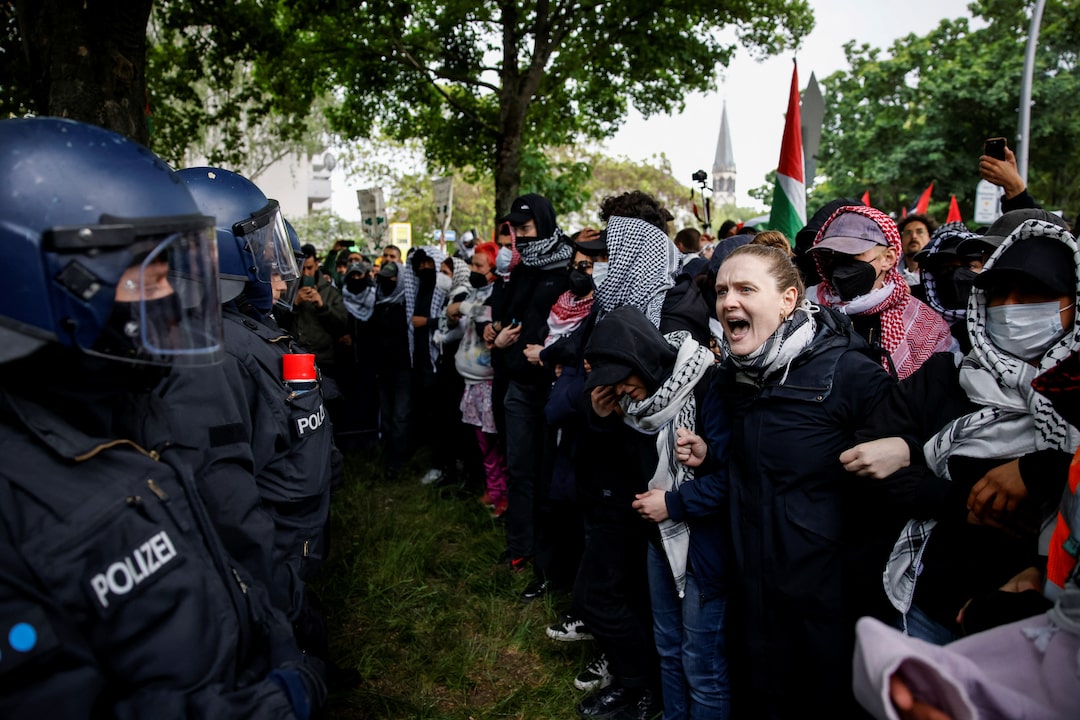2025年5月15日,德國柏林,親巴勒斯坦示威者抗議以色列,紀念"浩劫"(Nakba)77週年。路透社/Axel Schmidt