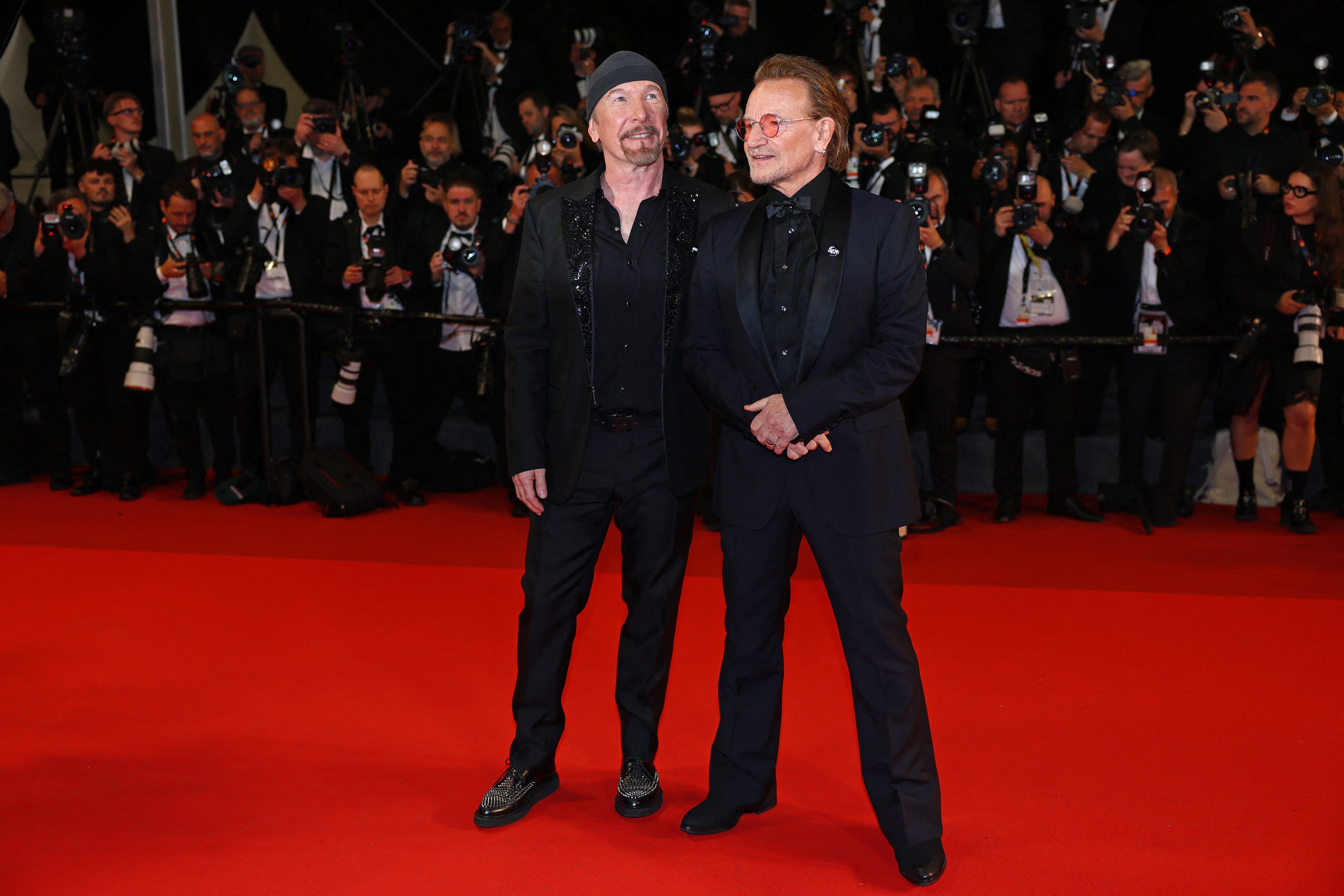 波諾與The Edge在法國戛納出席紀錄片《波諾:屈服的故事》首映紅毯,該片作為第78屆戛納電影節特別展映單元作品亮相。2025年5月16日。路透社/馬農·克魯茲法國戛納,5月16日(路透社)——U2主唱波諾早已習慣在座無虛席的體育場演出,但當他獨自站在佈景極簡的舞台上時,仍會感到陌生。這場個人演出如今成為蘋果TV+新紀錄片《波諾:屈服的故事》的焦點。