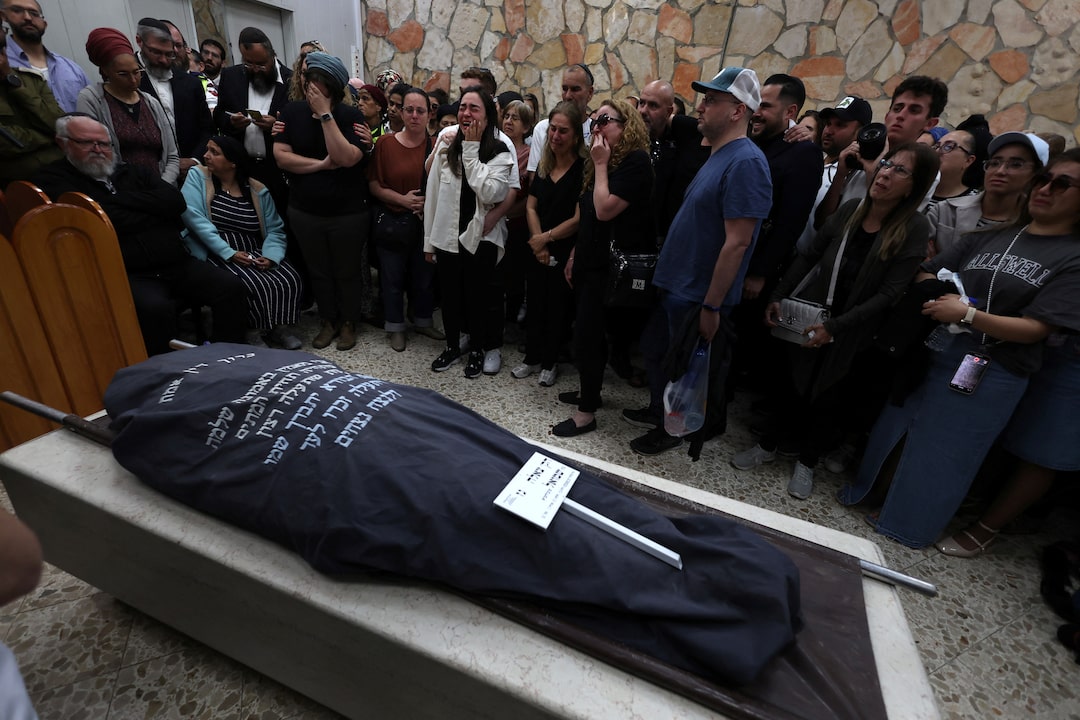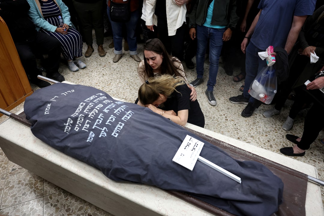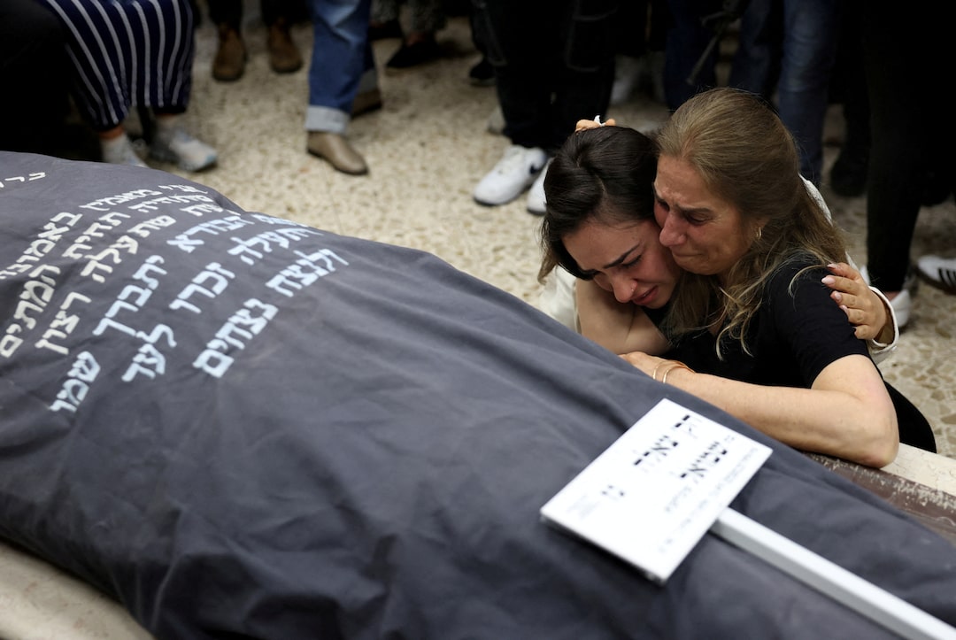 2025年5月15日,在耶路撒冷舉行的葬禮上,Tzeela Gez的親友們悲痛哀悼。她在與丈夫駕車前往醫院分娩途中,於西岸地區遭槍擊身亡。路透社/Ronen Zvulun 當日圖片精選