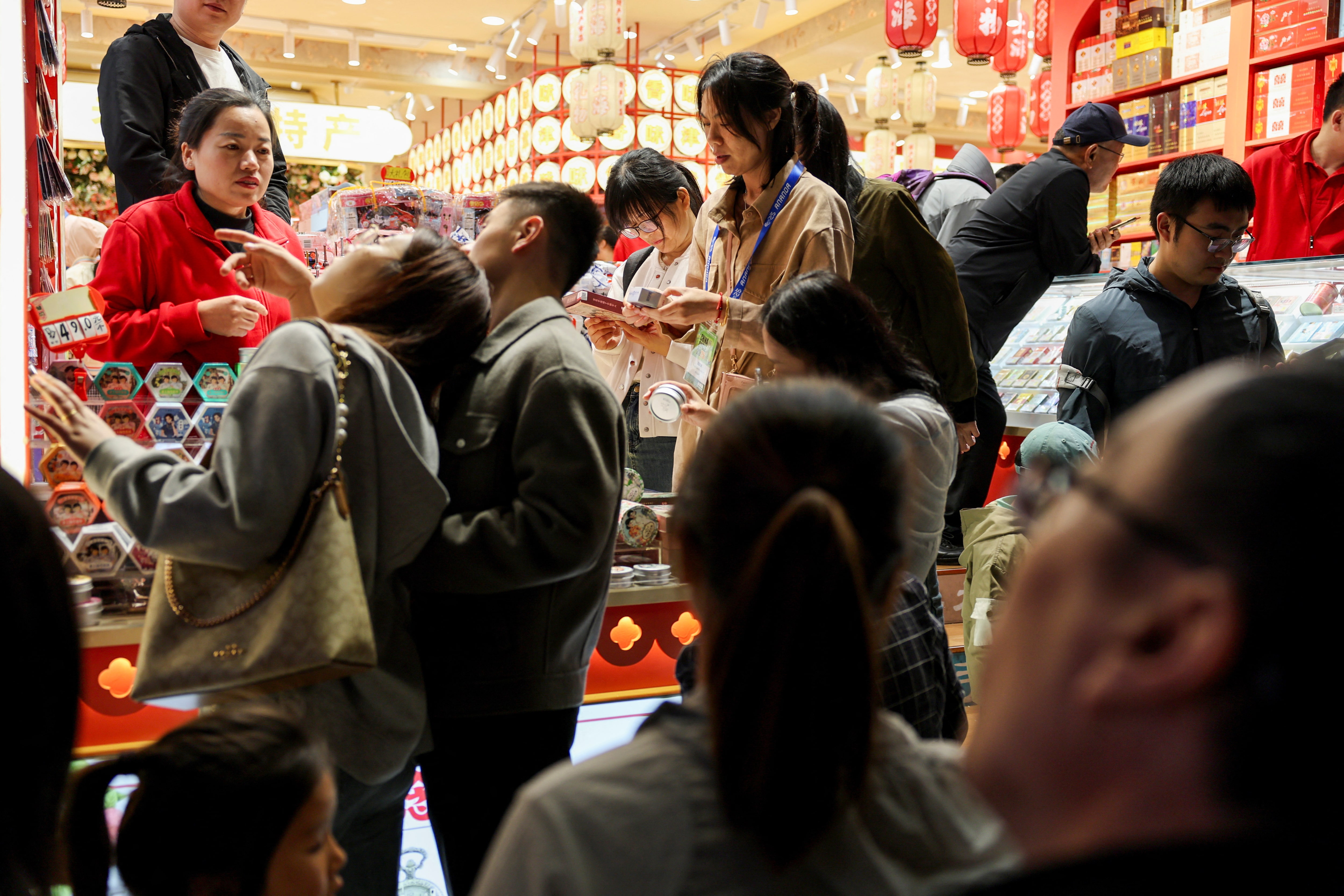 2025年5月4日,中國上海,民眾在五一長假期間於紀念品商店購物。路透社/Go Nakamura/資料圖路透北京5月19日電 - 週一公佈的官方數據顯示,中國4月規模以上工業增加值同比增長6.1%,較3月7.7%的增速有所放緩。