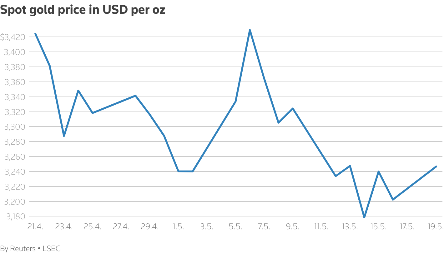 * 美元 (.DXY),新開標籤頁 對一籃子六種主要貨幣下跌0.7%,降低了外國買家購買金條的成本。* 黃金常被用作政治和金融不確定時期的保值手段,4月22日觸及每盎司3,500.05美元的歷史新高,今年以來累計上漲22%。