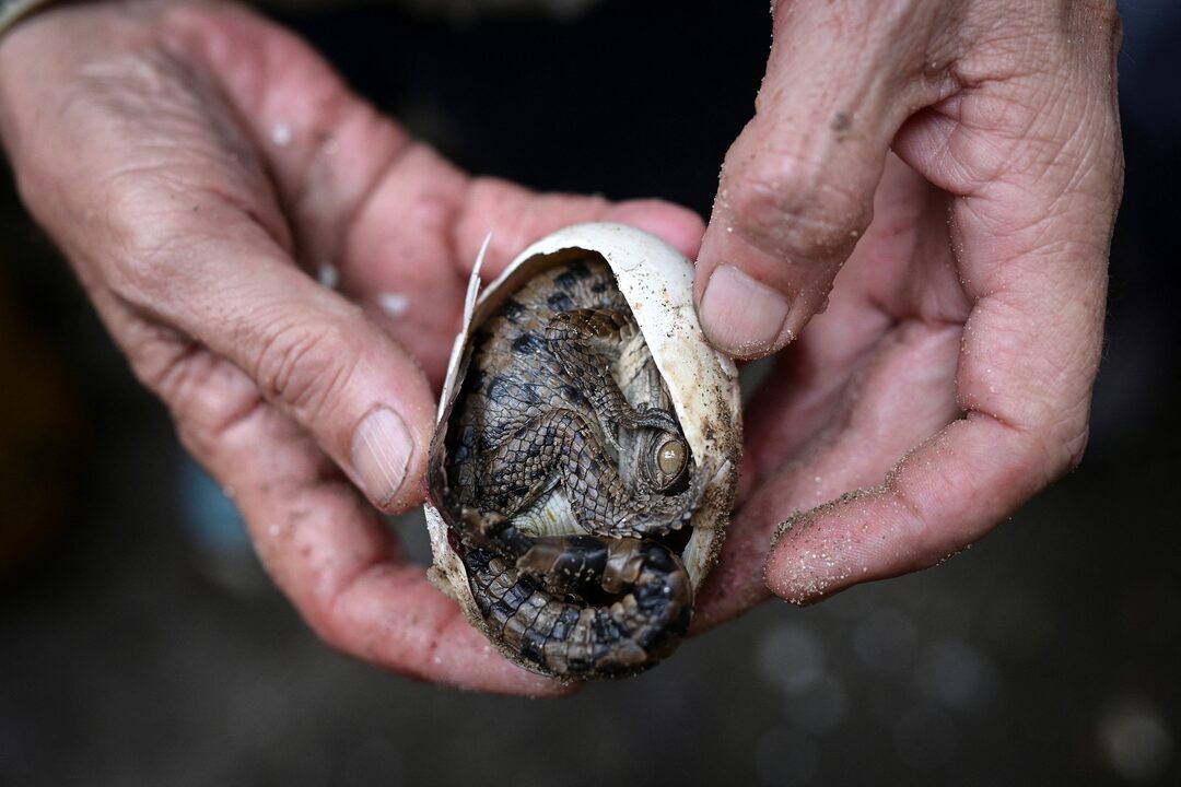 四月,路透社記者隨科研團隊參與了放歸行動。這些幼鱷在從動物園到卡帕納帕羅河的運輸途中,被安置在下顎捆紮的籠箱內。