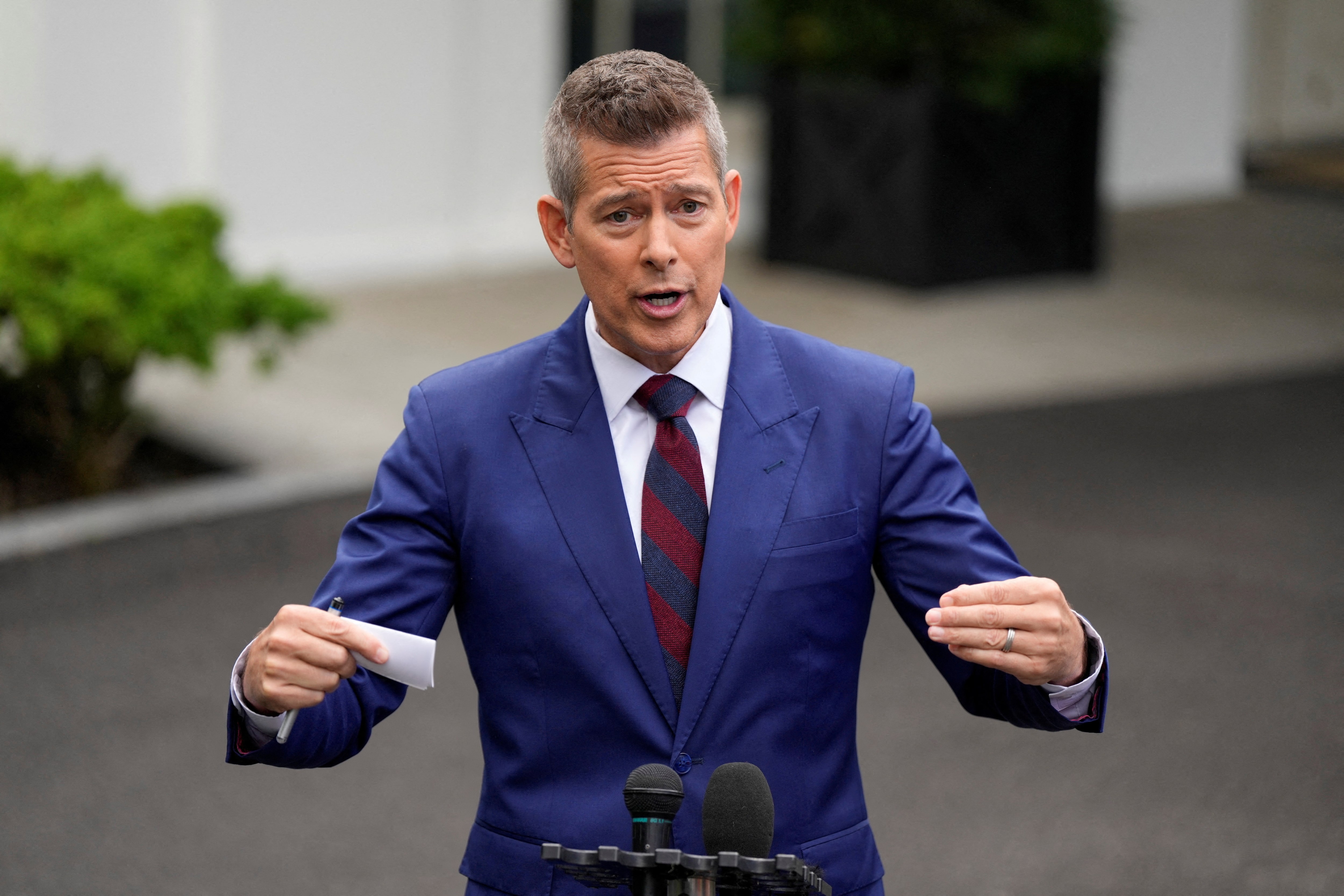 2025年5月6日,美國交通部長肖恩·達菲在華盛頓特區白宮外向媒體發表講話。路透社/Kent Nishimura/檔案照片華盛頓,5月19日(路透社)——汽車製造商週一表示,美國交通部預計將宣佈,前總統喬·拜登時期發佈的燃油經濟性規則因將電動汽車納入規則制定而超出了政府的法定權限。