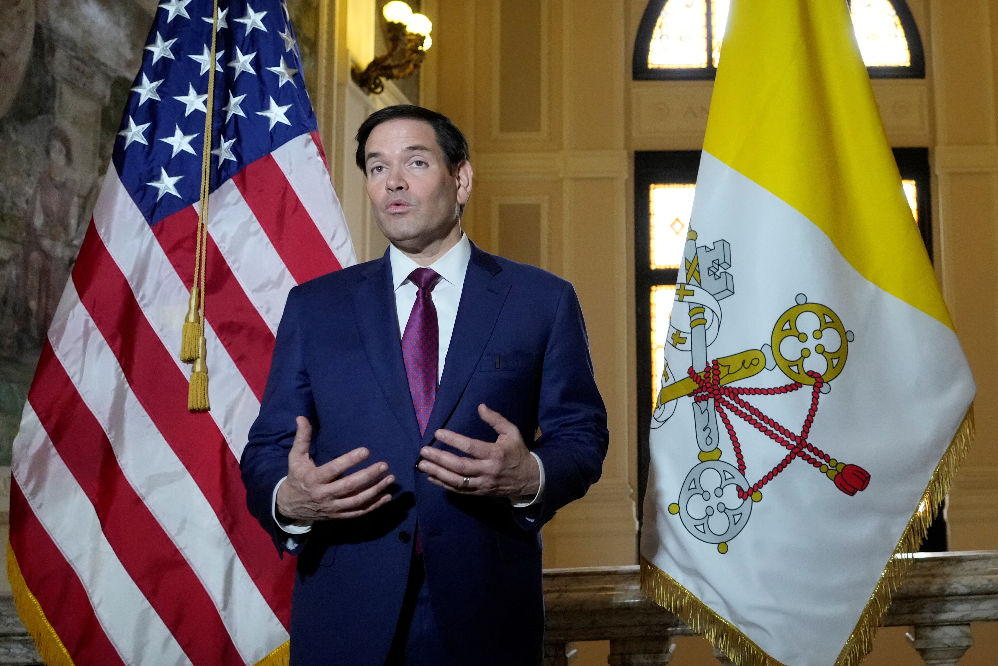 2025年5月17日星期六,美國國務卿馬可·魯比奧在羅馬美國駐梵蒂岡大使館與意大利主教會議主席馬泰奧·祖皮樞機主教會晤期間向媒體發表講話。Gregorio Borgia/Pool via REUTERS/檔案照片華盛頓,5月20日(路透社)- 美國國務卿馬可·魯比奧本週將在美國國會前同事面前作證,其中一些人表示後悔投票確認這位前參議員的任命,因為他沒有站出來反對總統唐納德·特朗普。參議院於1月20日以99-0的投票結果確認這位佛羅里達州共和黨參議員為美國最高外交官,民主黨人與特朗普的共和黨人一起,在特朗普宣誓就職僅幾小時後,就為總統提供了他第一個永久性的第二任期內閣成員。