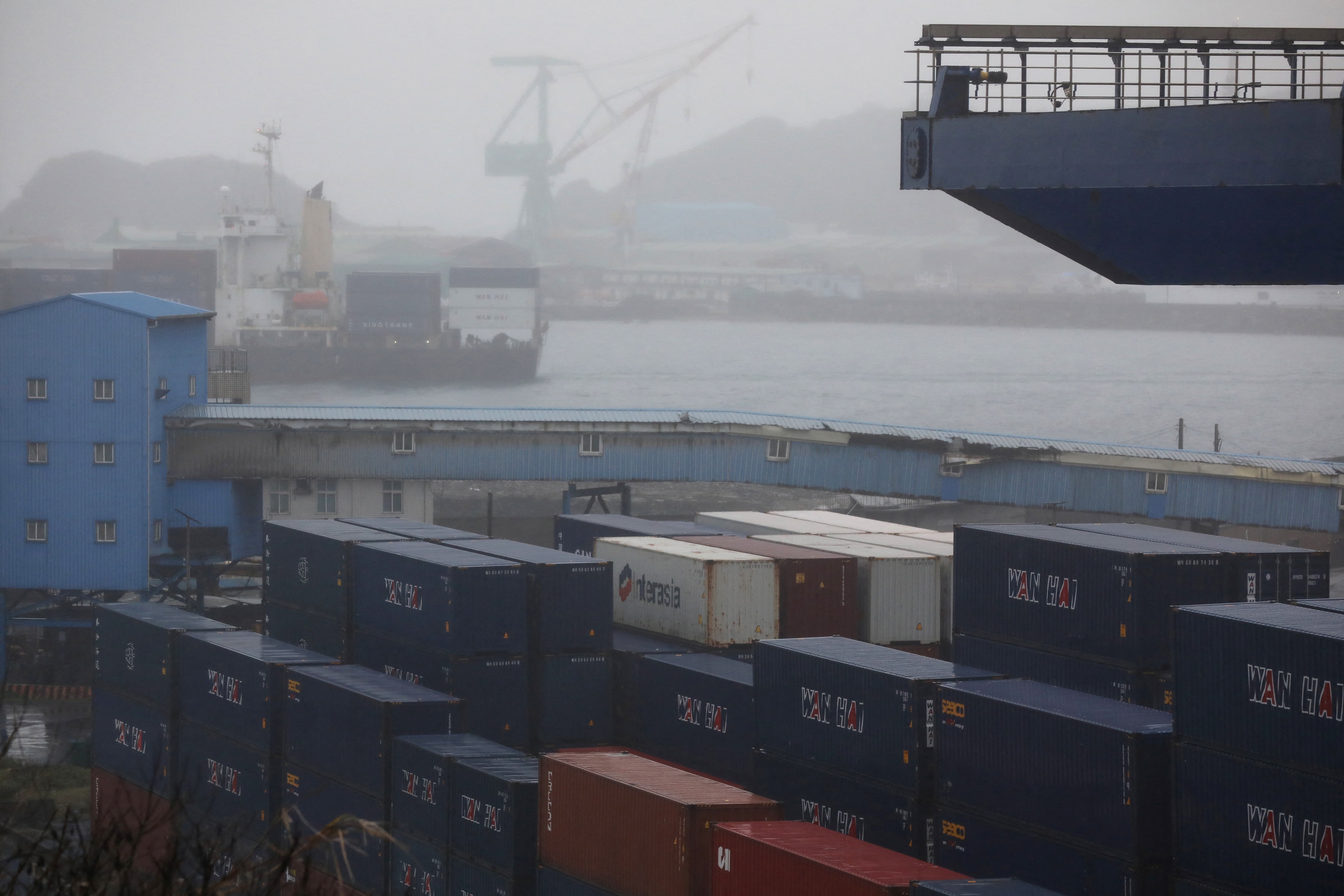 2023年2月13日,台灣基隆港堆放的貨運集裝箱。路透社/I-Hwa Cheng/檔案照片台北,5月20日(路透社)——台灣4月份出口訂單增幅超預期,因客户在全球關税實施前囤積該島科技產品。這些關税由美國總統唐納德·特朗普在同月實施後又部分取消。