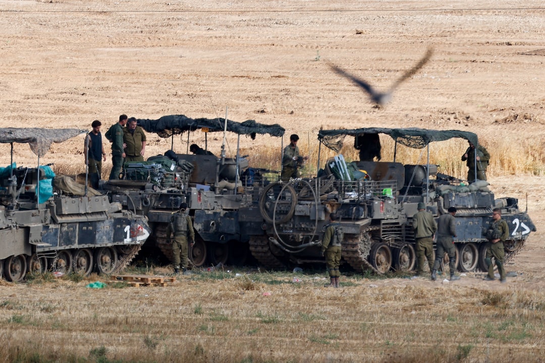 圖1/3:2025年5月20日,以色列與加沙邊境附近停放的軍用車輛。路透社/Amir Cohen
