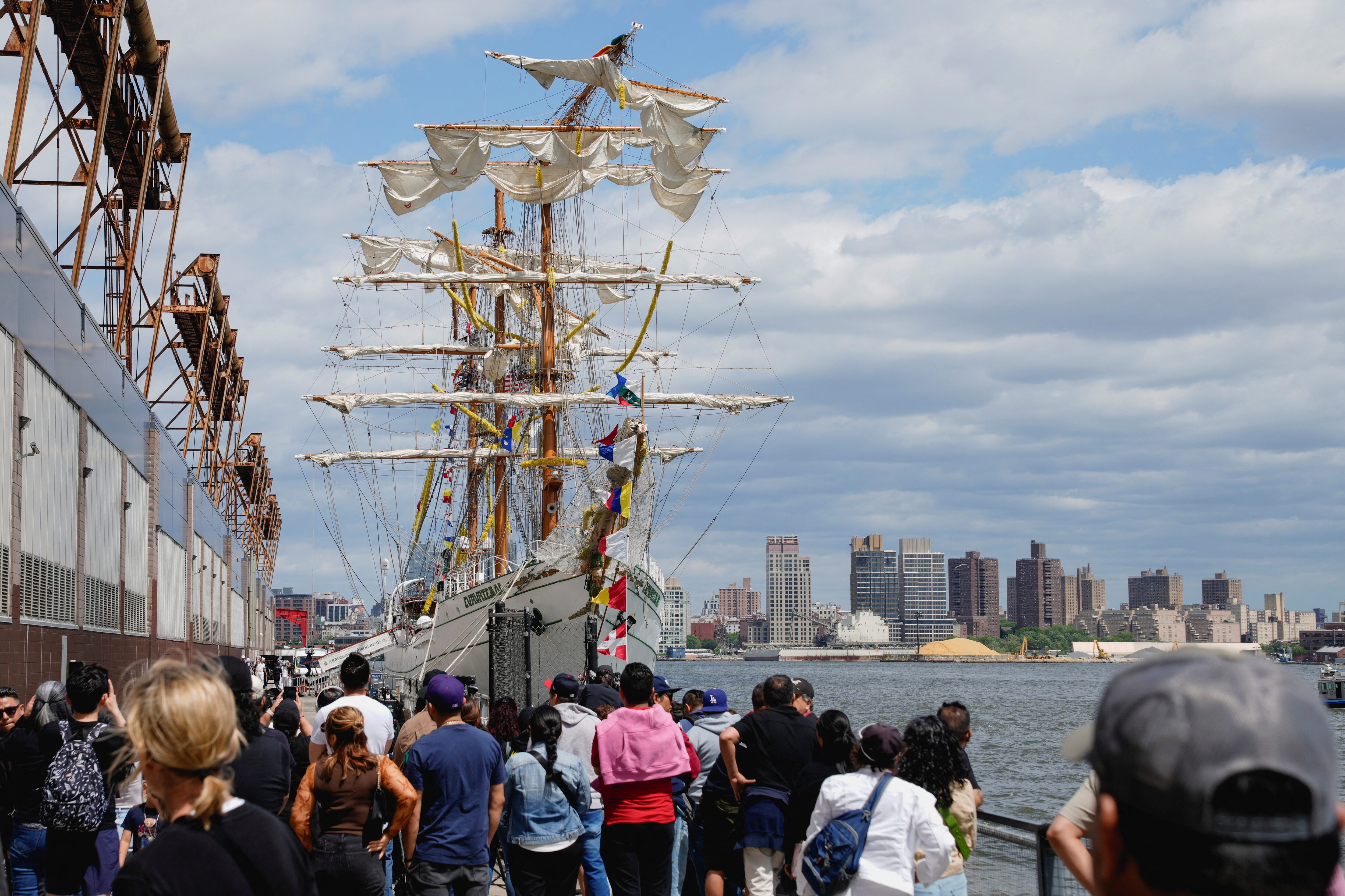 資料圖片:2025年5月18日,墨西哥海軍訓練艦"誇烏特莫克"號在紐約市布魯克林大橋附近發生碰撞後,桅杆斷裂停靠碼頭,民眾圍觀。路透社/Eduardo Muñoz 墨西哥城,5月20日(路透社)——墨西哥海軍部長週二表示,週六負責操控墨西哥海軍訓練艦的紐約領航員在布魯克林大橋事故中反應時間極短,因為船隻泊位與事發地點距離過近。