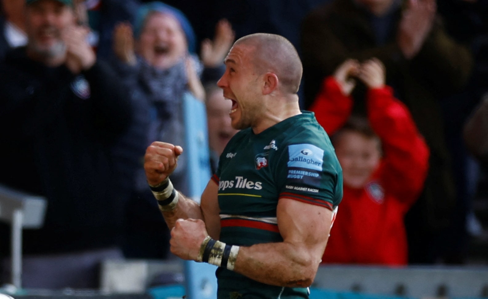 橄欖球聯盟 - 英超聯賽 - 萊斯特虎隊對陣薩拉森人隊 - 英國萊斯特韋爾福德路體育場 - 2023年2月19日 萊斯特虎隊邁克·布朗慶祝攻入第三球 動作圖片/彼得·奇博拉 5月20日(路透社) - 前英格蘭隊後衞邁克·布朗將在本賽季結束後退役,其效力的萊斯特虎隊週二宣佈。這位39歲的老將在告別之際呼籲橄欖球管理機構加強協作。