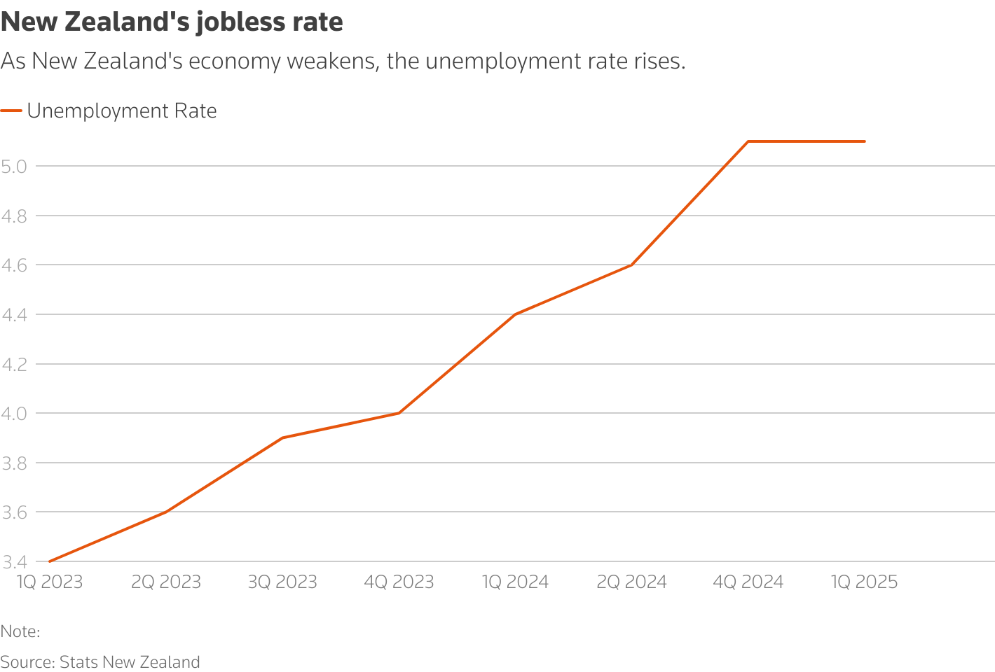 隨着新西蘭經濟走弱,失業率持續攀升。