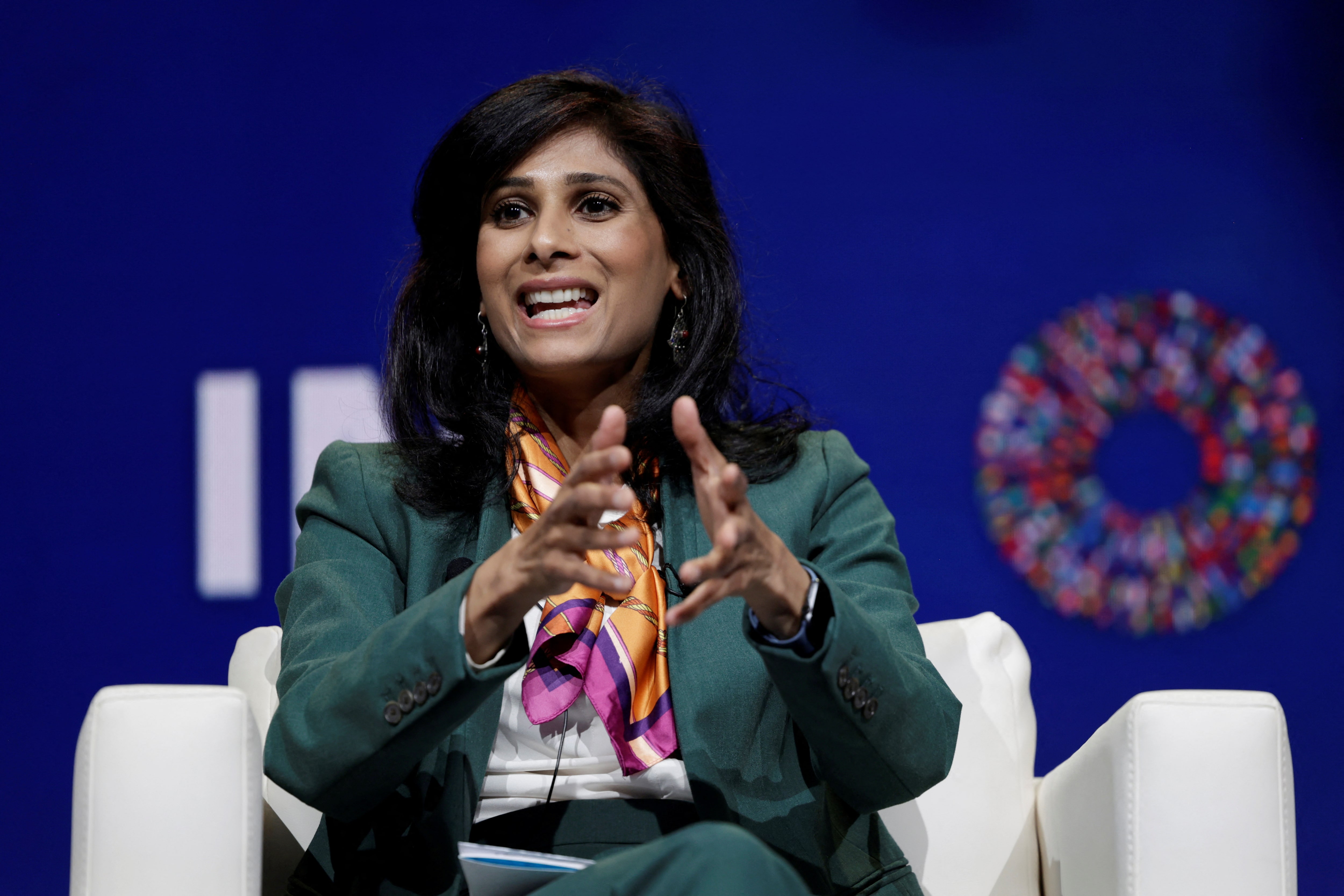 國際貨幣基金組織第一副總裁吉塔·戈皮納特於2023年10月13日參加在摩洛哥馬拉喀什舉行的國際貨幣基金組織和世界銀行年會第五天的討論小組,此前上個月發生了致命地震。路透社/蘇珊娜·維拉/檔案照片5月21日(路透社)- 根據週三《金融時報》發表的一篇採訪,國際貨幣基金組織第一副總裁吉塔·戈皮納特表示,美國的財政赤字過大,該國需要解決其“不斷增長”的債務負擔。