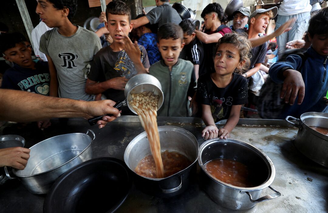2025年5月21日,加沙城巴勒斯坦民眾等待領取慈善廚房烹製的食物。路透社/Mahmoud Issa開羅/耶路撒冷,5月21日(路透社)——聯合國官員週三表示,儘管以色列政府解除了持續11周的封鎖(該封鎖已使巴勒斯坦飛地瀕臨饑荒),加沙地帶的巴勒斯坦人仍在等待人道主義援助的到來。