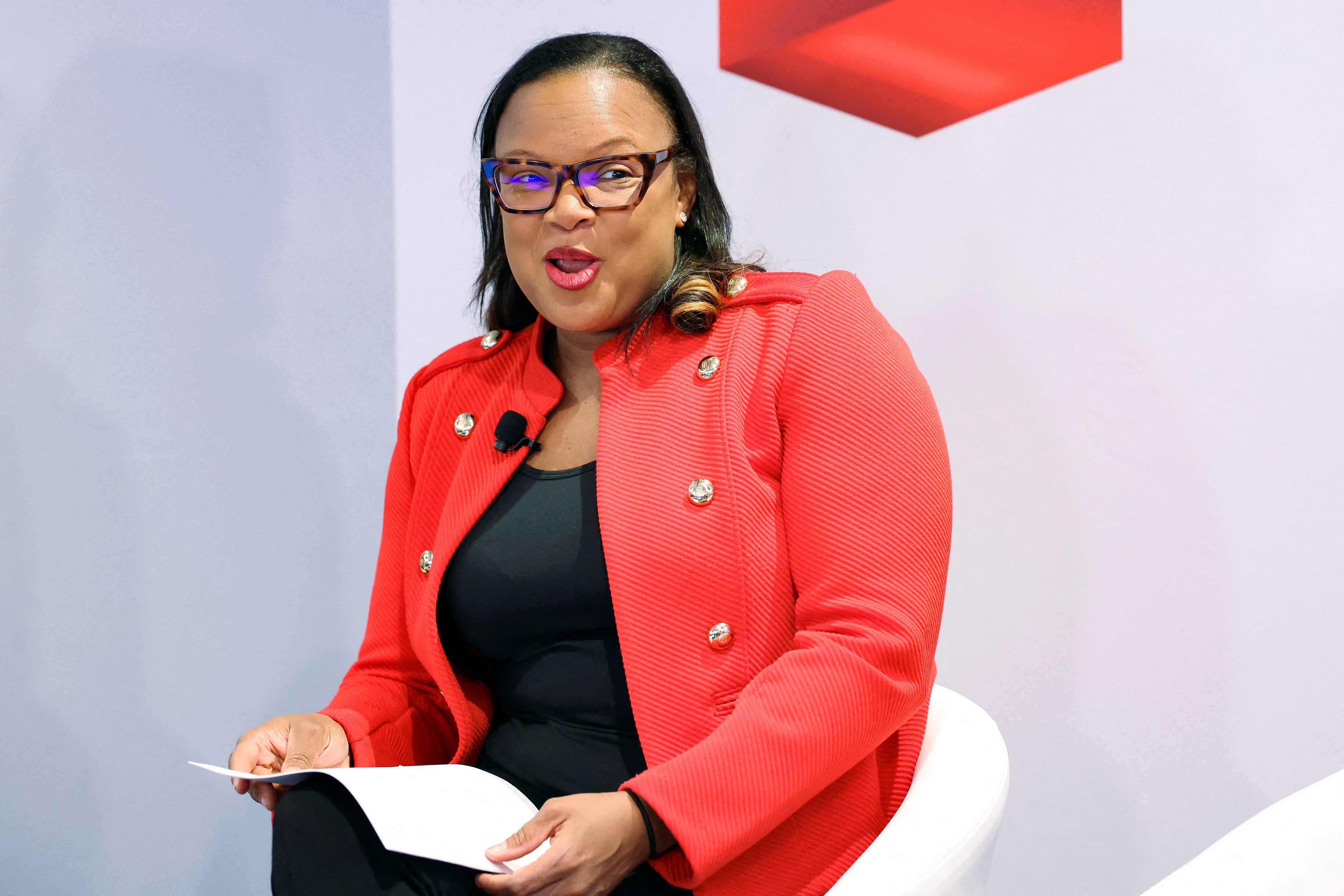 美國商品期貨交易委員會委員克里斯汀·約翰遜於2024年12月11日在紐約市舉行的路透NEXT峯會上發言。路透社/布倫丹·麥克德米德/檔案照片路透華盛頓/紐約5月21日電 - 民主黨籍委員克里斯汀·約翰遜週三表示,她計劃辭去美國商品期貨交易委員會(CFTC)職務,成為當前四位委員中最新一位宣佈將離任的監管官員。