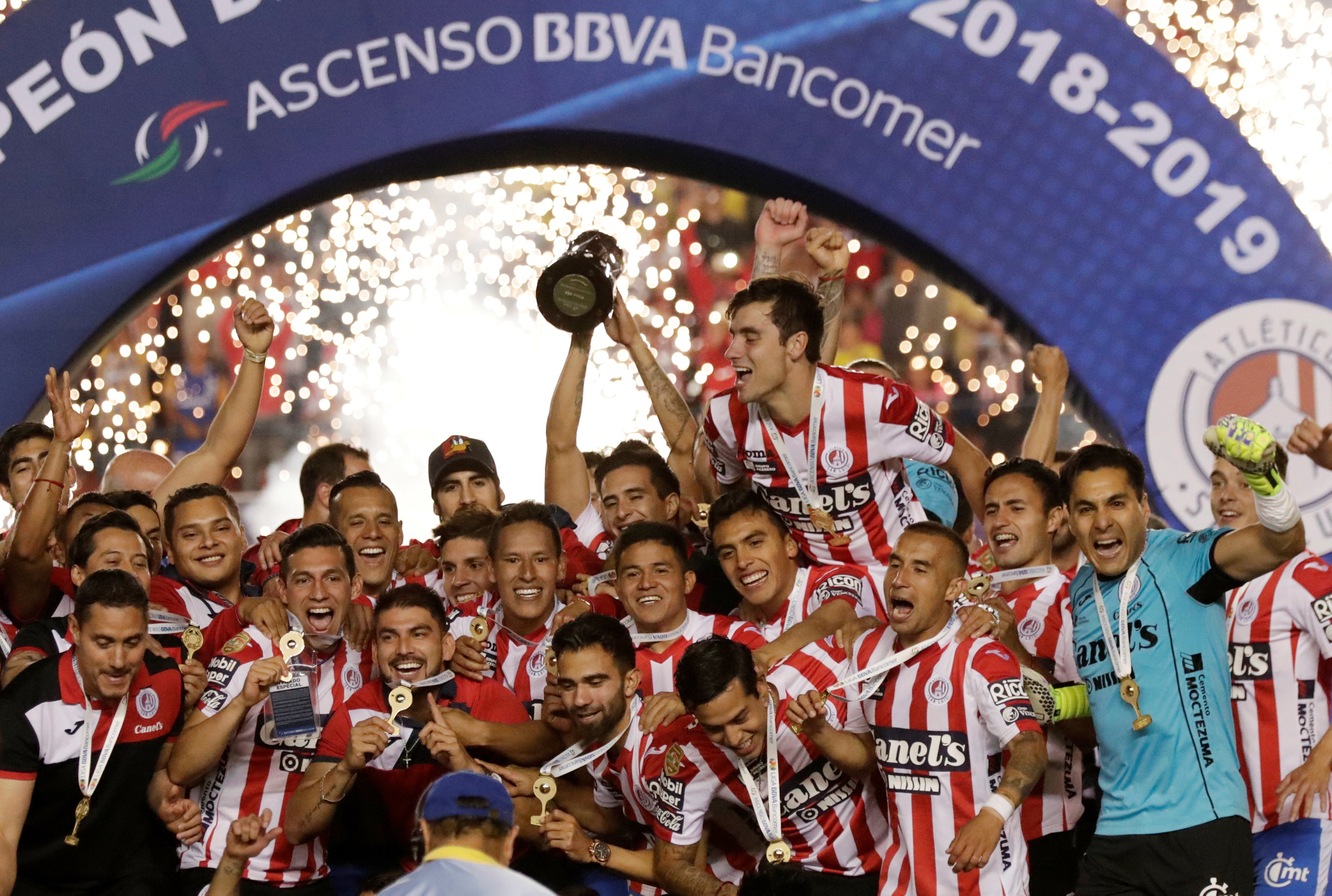 墨西哥足球聯賽中,聖路易斯競技俱樂部球員在升級後慶祝的檔案照片。墨西哥聖路易斯波託西阿方索·拉斯特拉斯體育場,2019年5月5日。路透社/Henry Romero5月21日(路透社)——體育仲裁法庭(CAS)週三確認已收到墨西哥二級聯賽俱樂部提出的上訴,要求恢復升降級制度,並將在之後確定首次聽證會的日期。