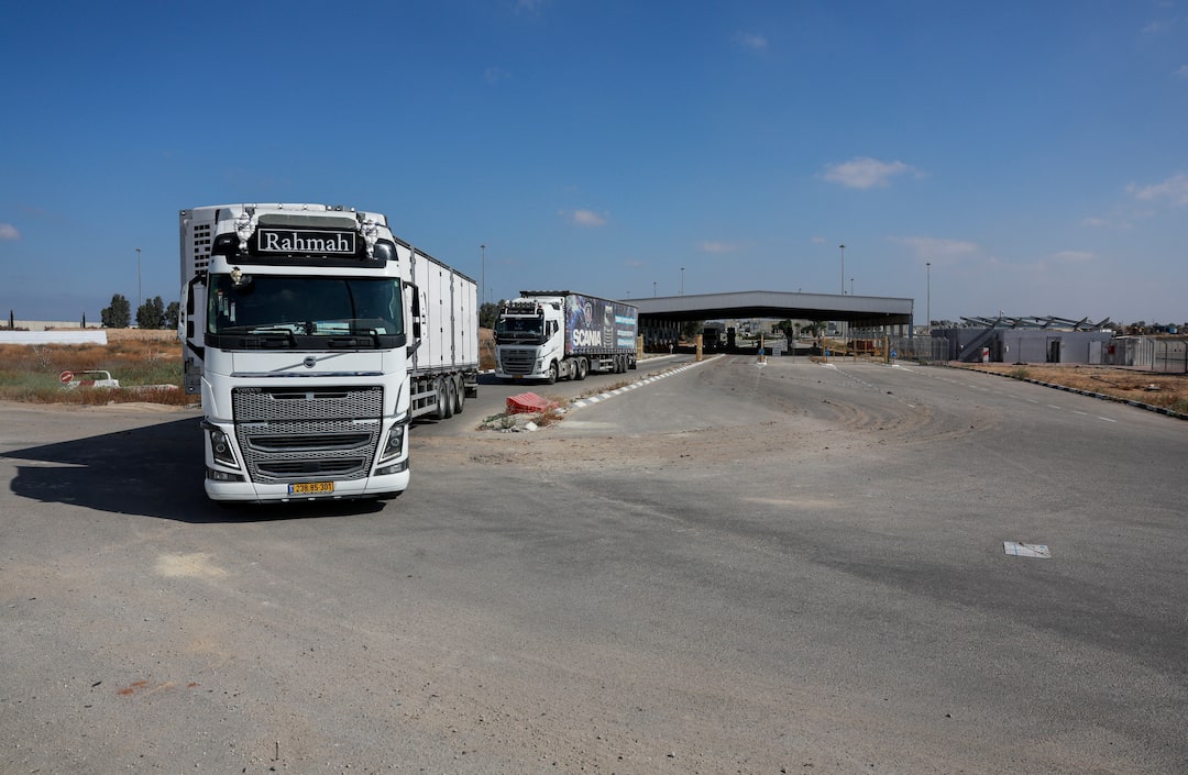 圖集1/2 2025年5月22日,運送援助物資的卡車在以色列-加沙邊境的凱雷姆沙洛姆過境點行駛,準備進入加沙地帶。路透社/阿馬爾·阿瓦德