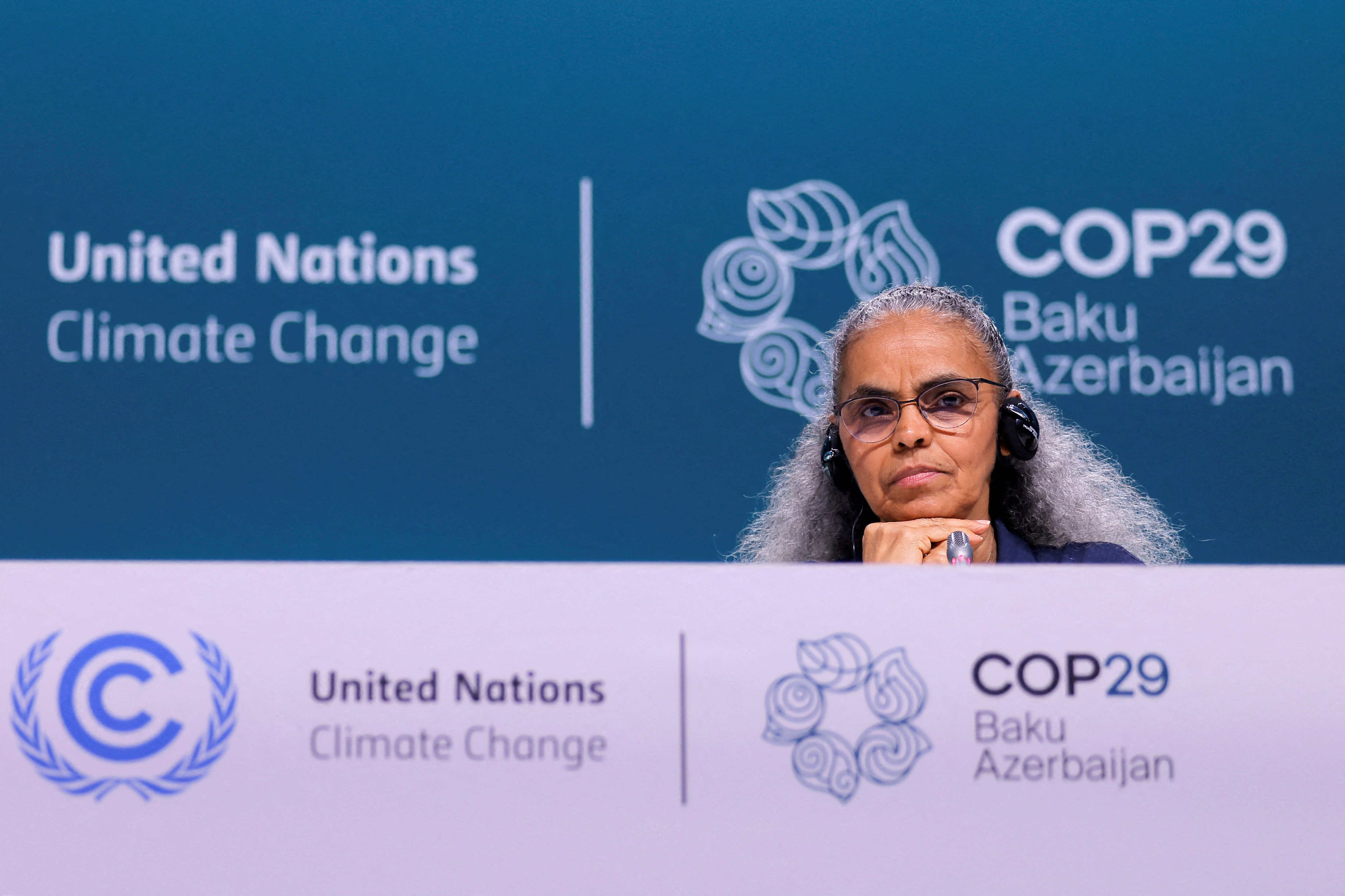 2024年11月22日,巴西環境部長瑪麗娜·席爾瓦在阿塞拜疆巴庫舉行的COP29聯合國氣候變化大會新聞發佈會上發表講話。路透社/馬克西姆·舍梅托夫/資料圖片路透巴西利亞5月22日電 - 儘管遭到氣候政策團體和盧拉·達席爾瓦總統政府內部人士的批評,巴西參議院仍通過了放寬環境許可的立法。