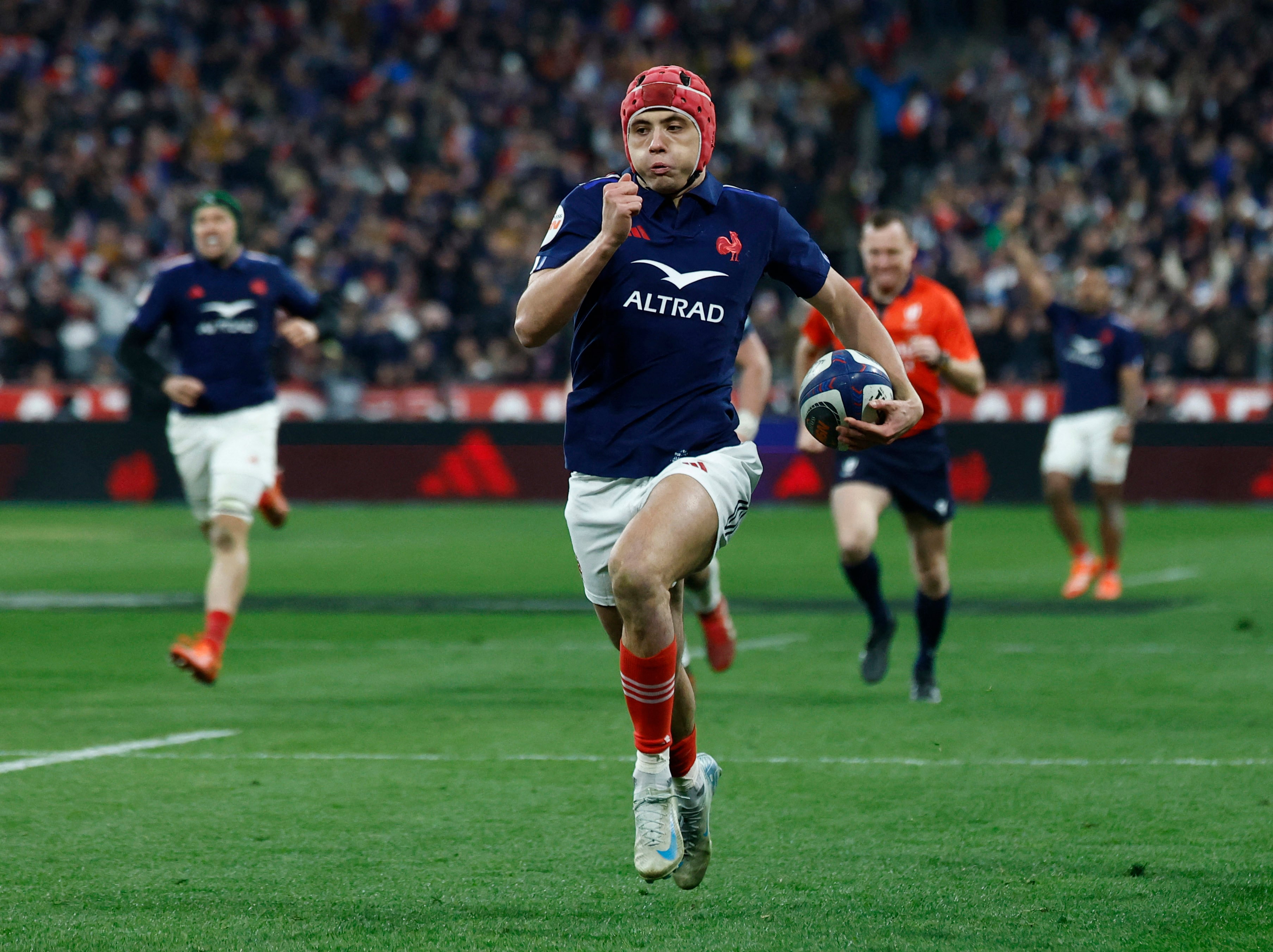 橄欖球聯盟 - 六國錦標賽 - 法國對蘇格蘭 - 法國聖但尼法蘭西體育場 - 2025年3月15日 法國選手路易斯·比耶勒-比亞雷攻入第二記達陣 路透社/斯蒂芬妮·勒科克/資料圖片路透倫敦5月22日電 - 在俱樂部和國家隊度過一個可能更輝煌的非凡賽季後,法國波爾多貝格勒邊鋒路易斯·比耶勒-比亞雷週四被英國橄欖球作家協會評為年度最佳球員。