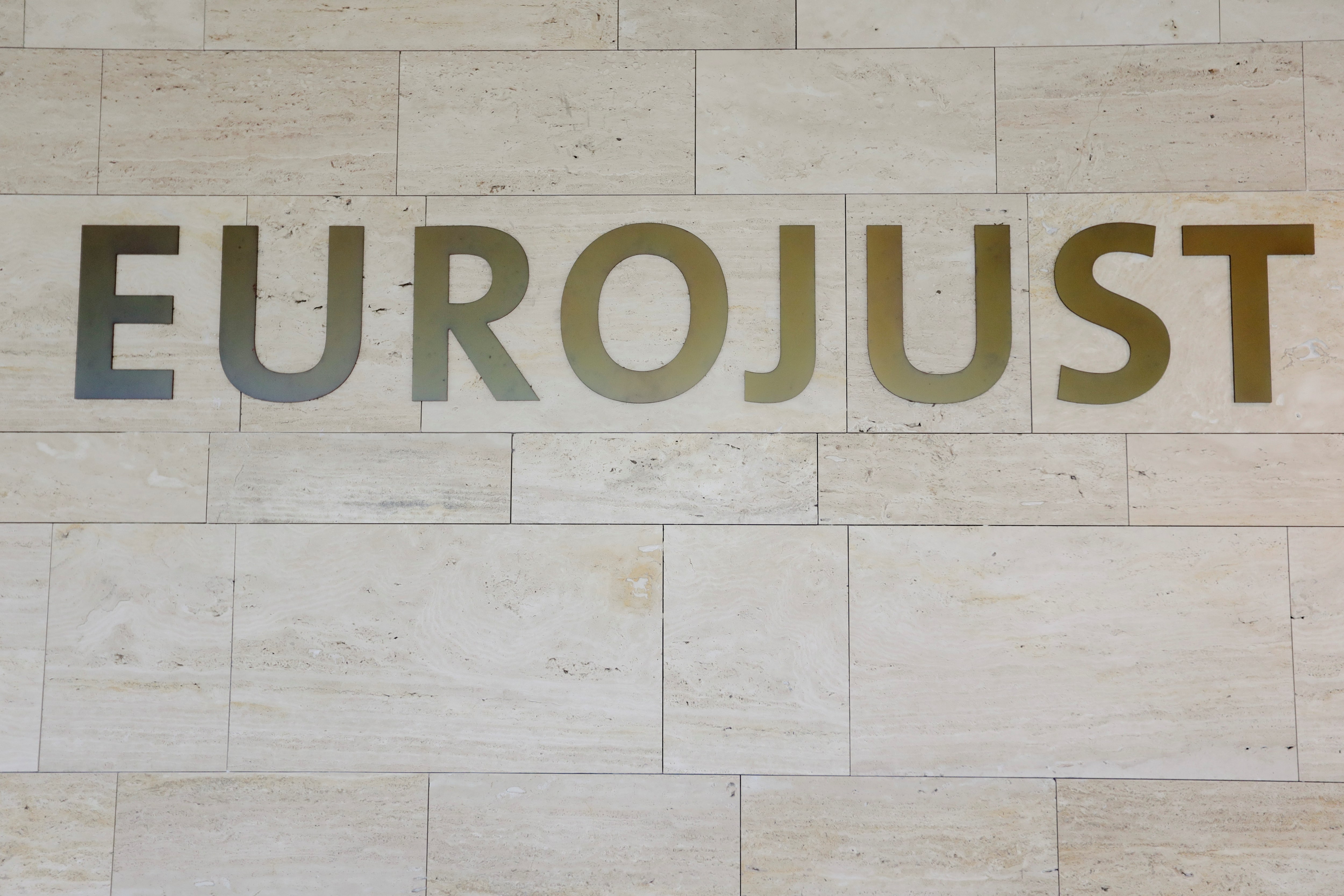 2022年5月31日,在俄羅斯入侵烏克蘭的背景下,歐盟刑事司法合作機構歐洲司法組織(Eurojust)總部舉行涉嫌戰爭罪新聞發佈會前,其標誌懸掛於荷蘭海牙總部。路透社/Eva Plevier/檔案照片路透巴黎5月23日電 - 歐盟刑事司法合作機構歐洲司法組織(Eurojust)在聲明中表示,歐美加當局在全球搗毀300多台服務器,並對20名嫌疑人發出國際逮捕令,這是打擊惡意軟件的"終局行動"最新進展。