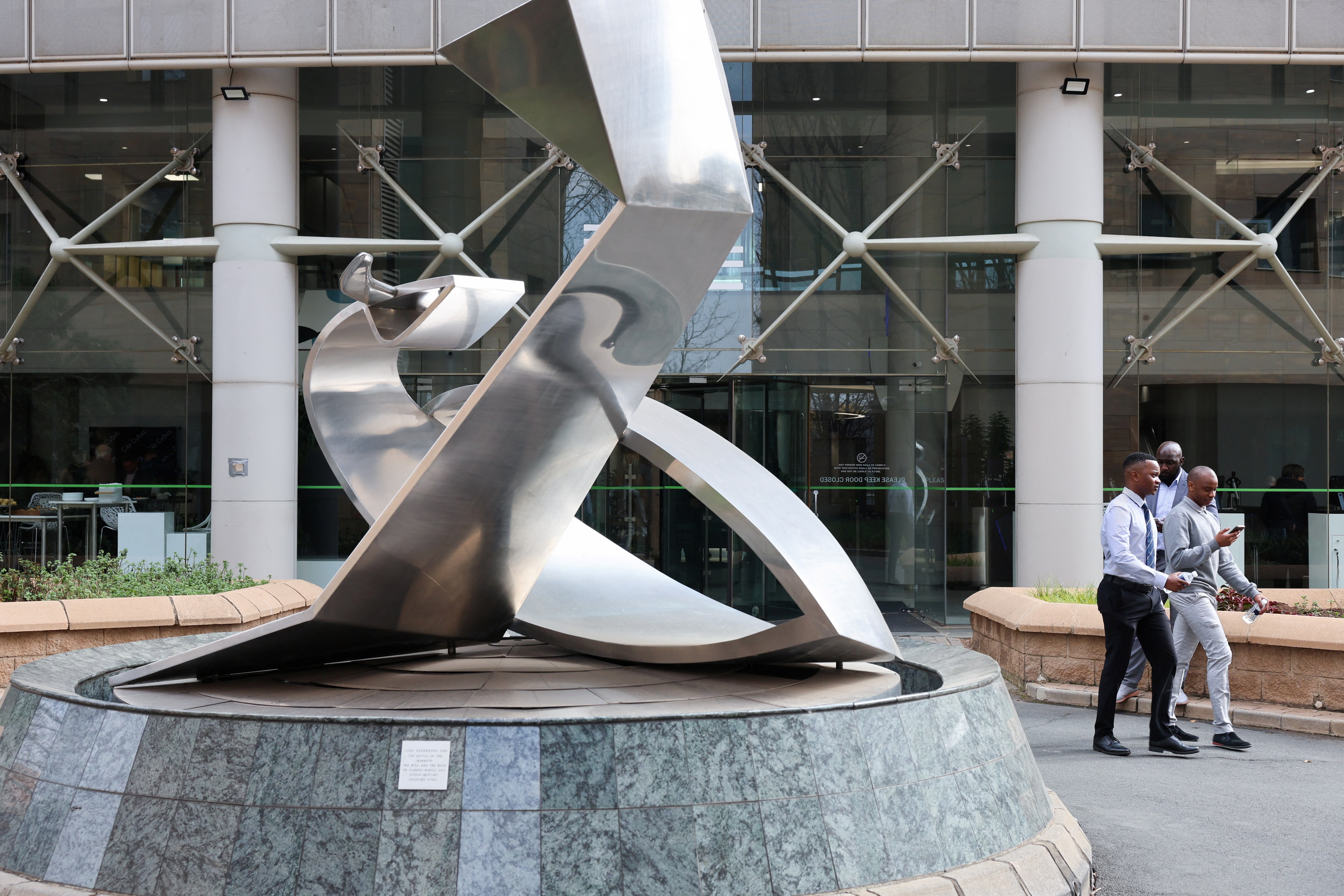 2024年6月25日,人們走過南非約翰內斯堡證券交易所(JSE)入口處。路透社/Lelethu Madikane/檔案照片約翰內斯堡,5月23日(路透社)——受黃金價格上漲推動,南非蘭特、股市和政府債券週五走強,因對美國財政健康狀況惡化的擔憂促使投資者轉向這一避險資產。