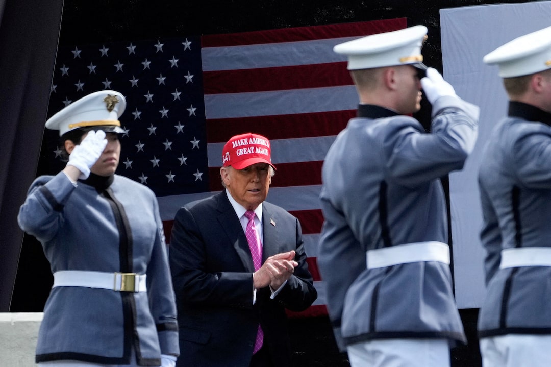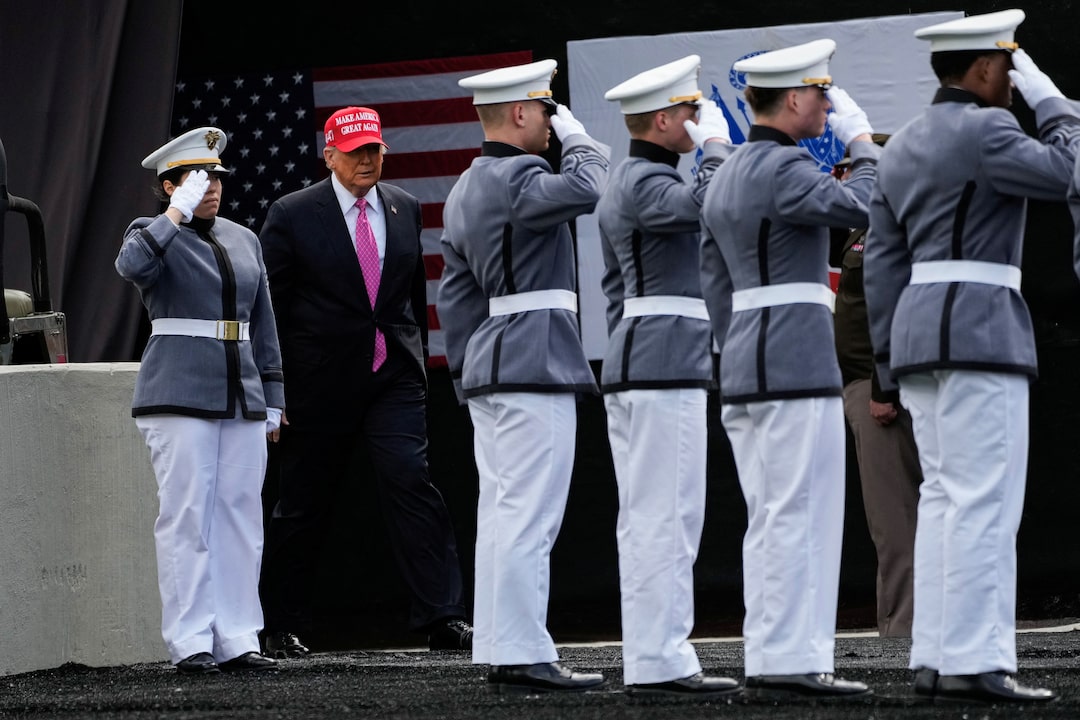 儘管對軍隊及其他政府機構施加個人影響,特朗普始終是軍隊的堅定支持者。今年二月,他解除了時任參謀長聯席會議主席空軍上將C·Q·布朗的職務,並在史無前例的軍方高層改組中撤換了五名海軍上將和陸軍將領。這是特朗普繼2020年新冠疫情高峯期間出席畢業典禮後,第二次在哈德遜河畔的軍校發表畢業演講。當時學員們為防疫需間隔就坐並佩戴口罩。