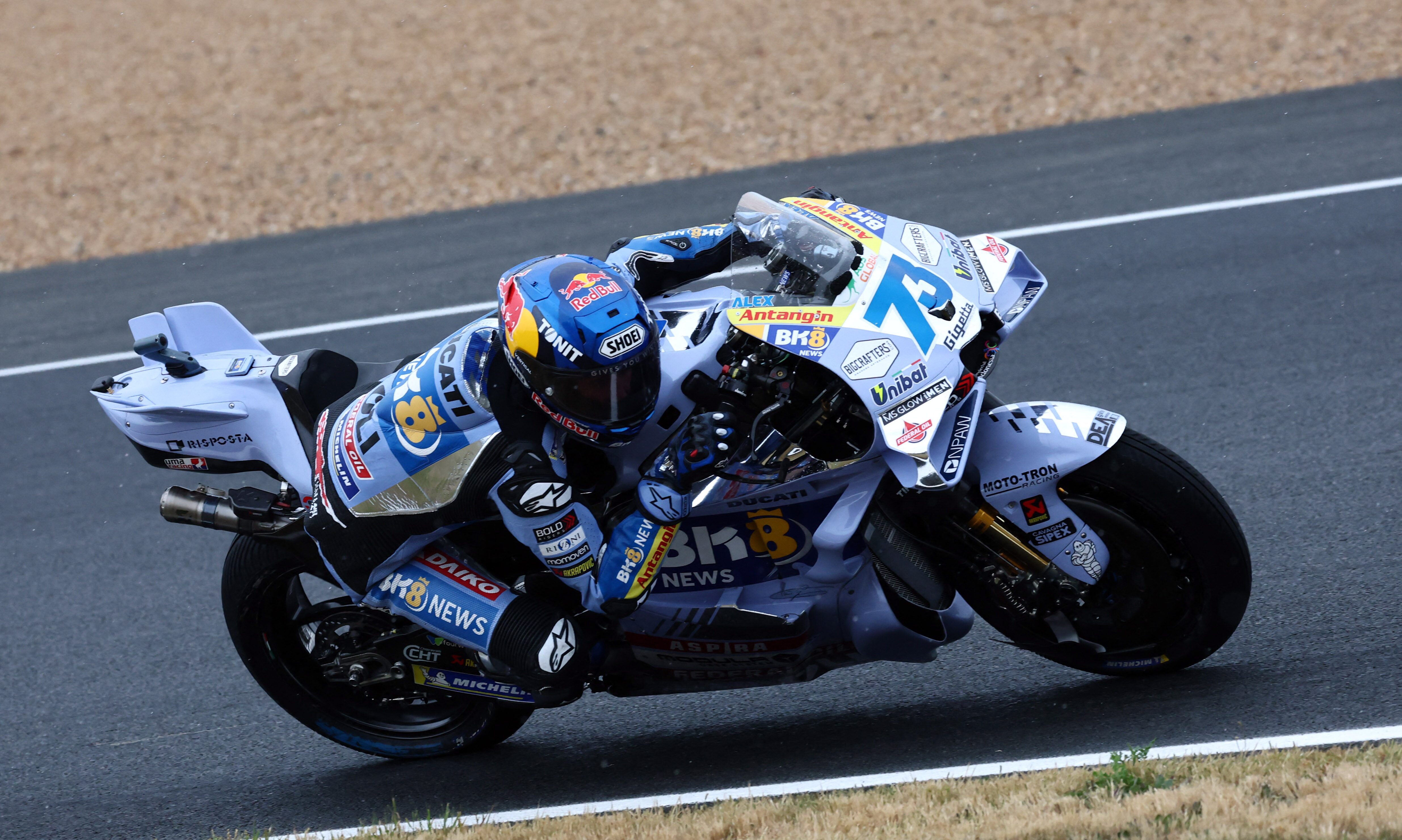 2025年5月11日,法國勒芒,Gresini Racing車隊車手亞歷克斯·馬克斯參加法國大獎賽。攝影:史蒂芬·馬赫 - 路透社購買授權權利,打開新標籤頁英國銀石賽道,5月24日(阿拉伯路透體育專線)——Gresini Racing車隊的亞歷克斯·馬克斯在週六的英國大獎賽速度賽中利用對手失誤奪冠,終結了哥哥馬克創下的連勝紀錄,並縮小了與哥哥在世界摩托車錦標賽總積分榜上的差距。