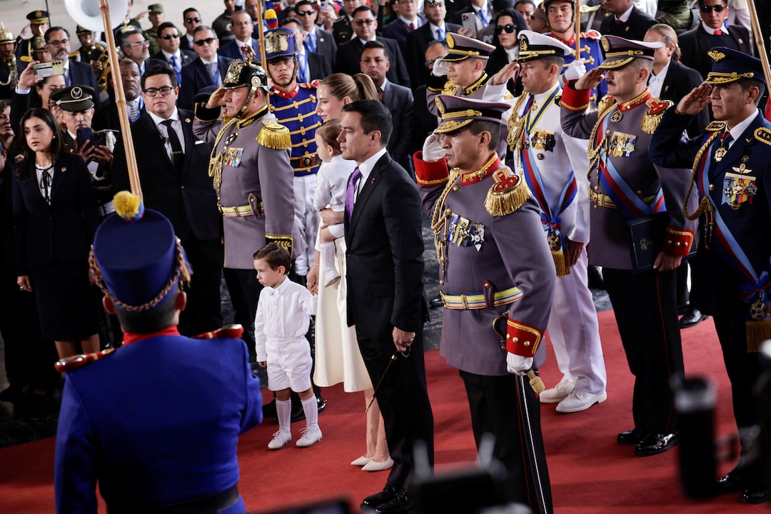 圖集1/3:2025年5月24日,厄瓜多爾總統丹尼爾·諾沃亞抵達國民議會,準備開啓第二任期就職典禮。路透社/Karen Toro