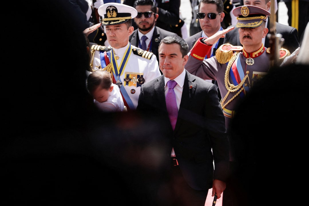 圖集1/3:2025年5月24日,厄瓜多爾總統丹尼爾·諾沃亞抵達國民議會,準備開啓第二任期就職典禮。路透社/Karen Toro