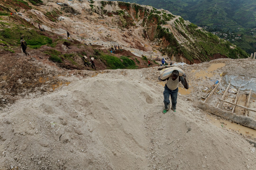 圖集1/2 2025年3月24日,剛果民主共和國東部M23反叛武裝控制的魯巴亞鎮,一名勞工在魯巴亞鈳鉭鐵礦搬運礦石麻袋。路透社/Zohra Bensemra/檔案照片