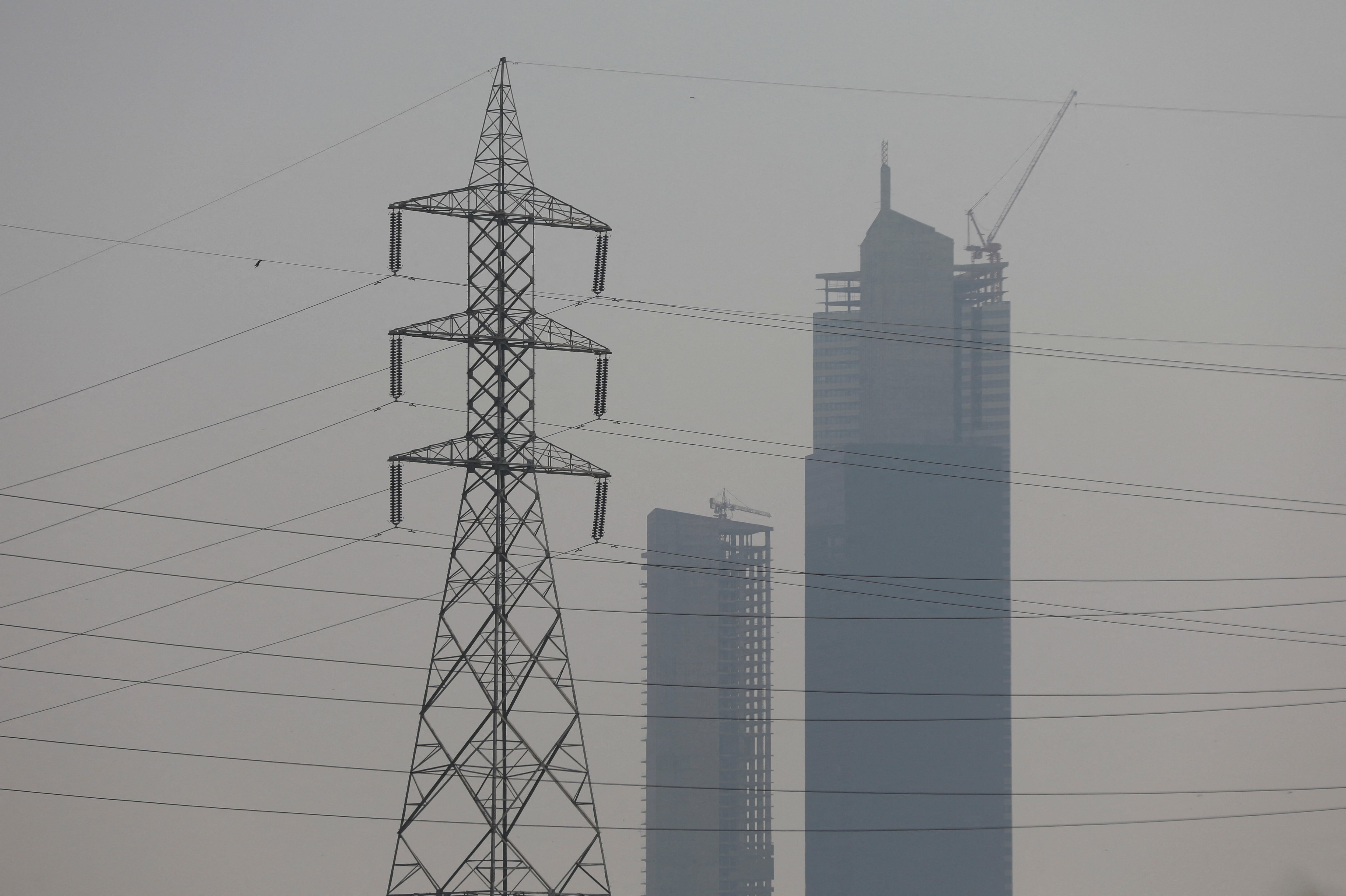 2023年1月24日,巴基斯坦卡拉奇,一座輸電塔與背景中的Bharia Icon Tower同框。路透社/Akhtar Soomro/資料圖片伊斯蘭堡5月25日電(路透社)——巴基斯坦財政部週日表示,將在國家支持比特幣挖礦和人工智能數據中心的首期計劃中分配2000兆瓦電力。