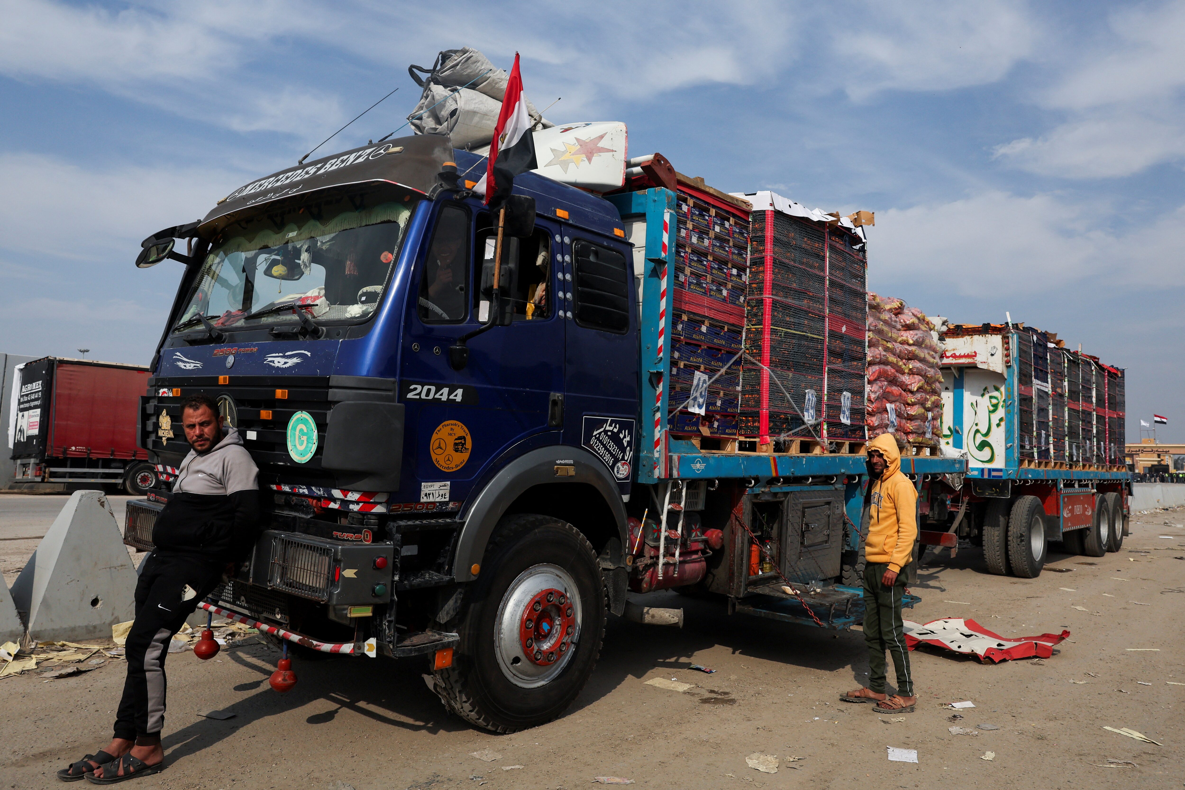 人們站在人道主義援助卡車旁,等待通過拉法邊境口岸進入加沙地帶,攝於2025年1月28日埃及拉法。照片來源:阿姆魯·阿卜杜拉·達爾什 - 路透社開羅5月26日電(路透社)——知情人士週一表示,巴勒斯坦伊斯蘭抵抗運動(哈馬斯)處決了四名搶劫援助卡車的男子,這些卡車已開始進入加沙。